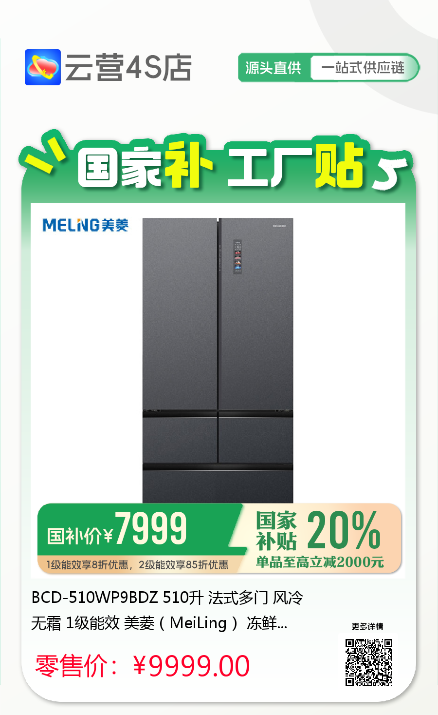 BCD-510WP9BDZ 510升 法式多门 风冷无霜 1级能效 美菱(MeiLing) 冻鲜生