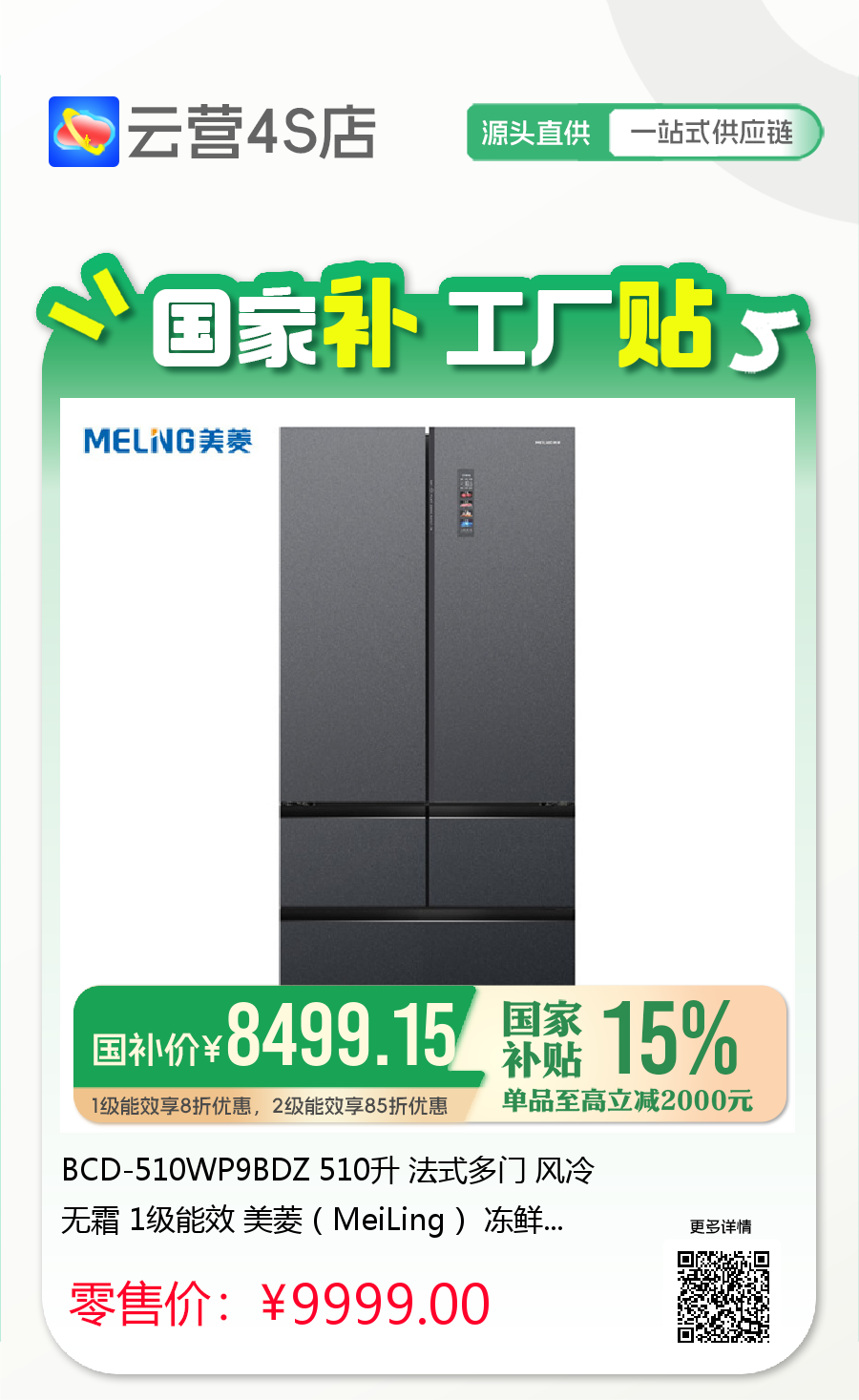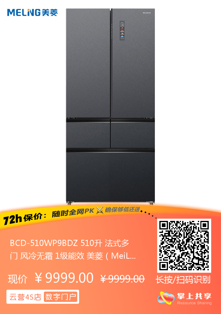 BCD-510WP9BDZ 510升 法式多门 风冷无霜 1级能效 美菱(MeiLing) 冻鲜生
