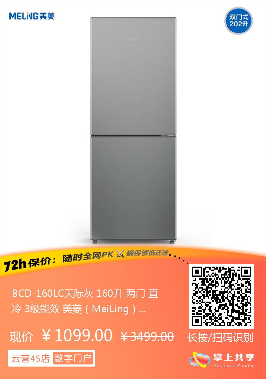BCD-160LC天际灰 160升 两门 直冷 3级能效 美菱(MeiLing)