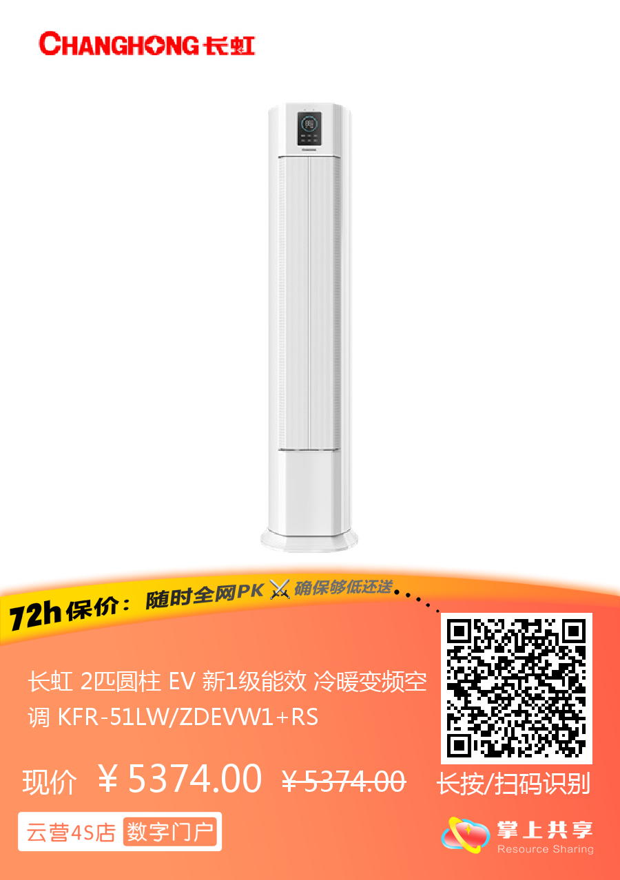 长虹 2匹圆柱 EV 新1级能效 冷暖变频空调 KFR-51LW/ZDEVW1+RS
