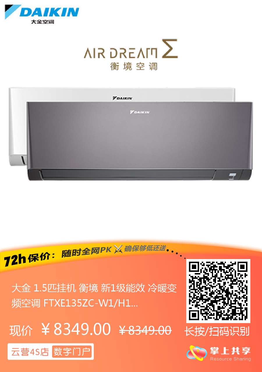大金 1.5匹挂机 衡境 新1级能效 冷暖变频空调 FTXE135ZC-W1/H1