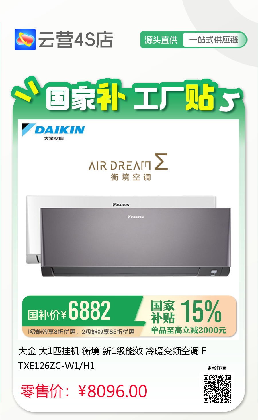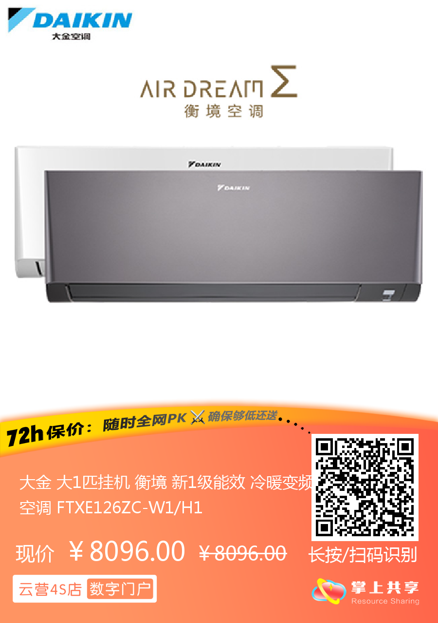 大金 大1匹挂机 衡境 新1级能效 冷暖变频空调 FTXE126ZC-W1/H1