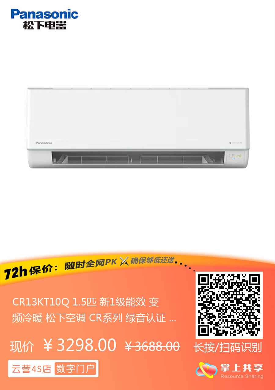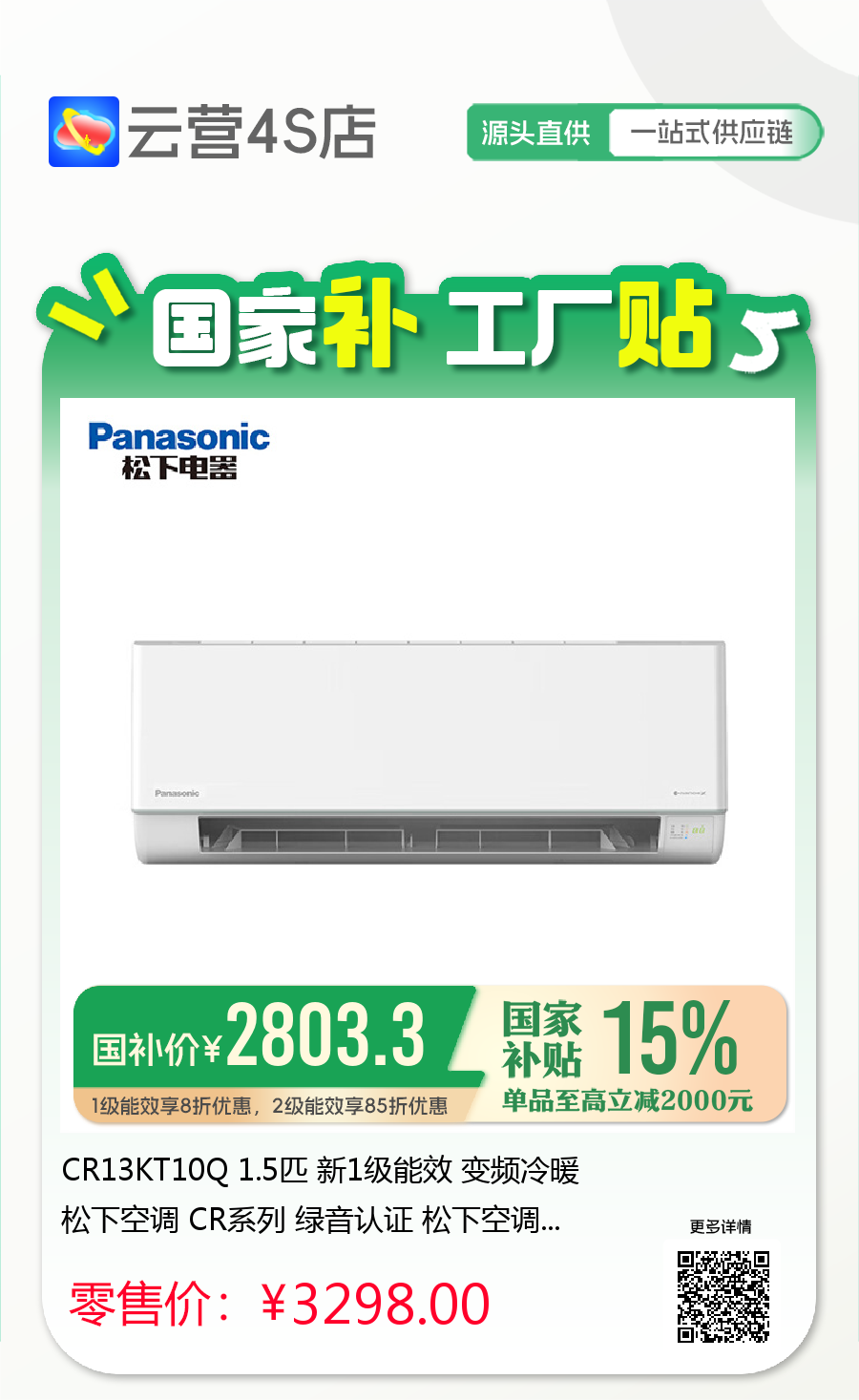 松下 1.5匹挂机 CE 新1级能效 冷暖变频空调 CR13KT10Q