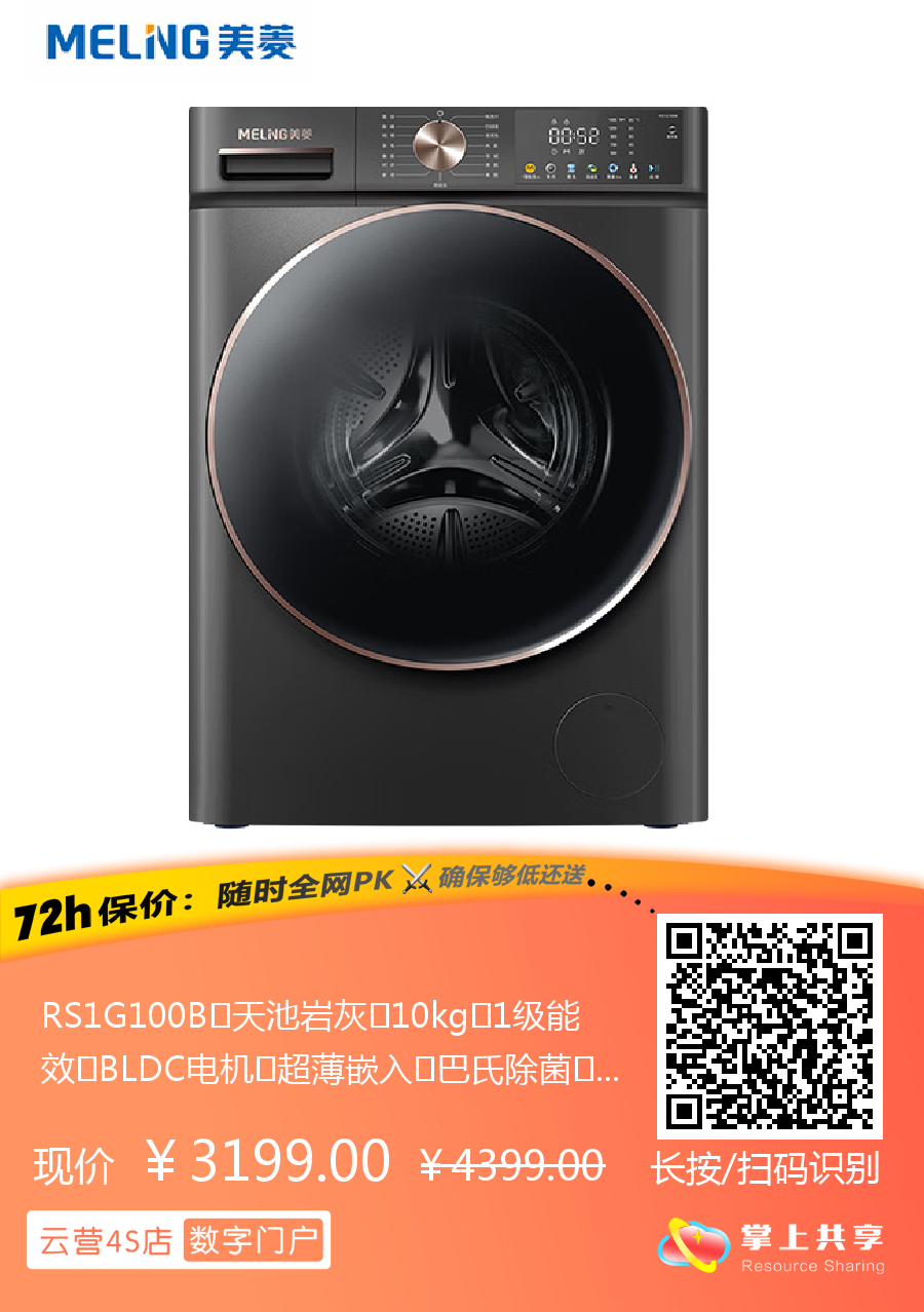 RS1G100B 天池岩灰 10kg 1级能效 BLDC电机 超薄嵌入 巴氏除菌 滚筒洗衣机 美菱(MeiLing) 如手洗系列