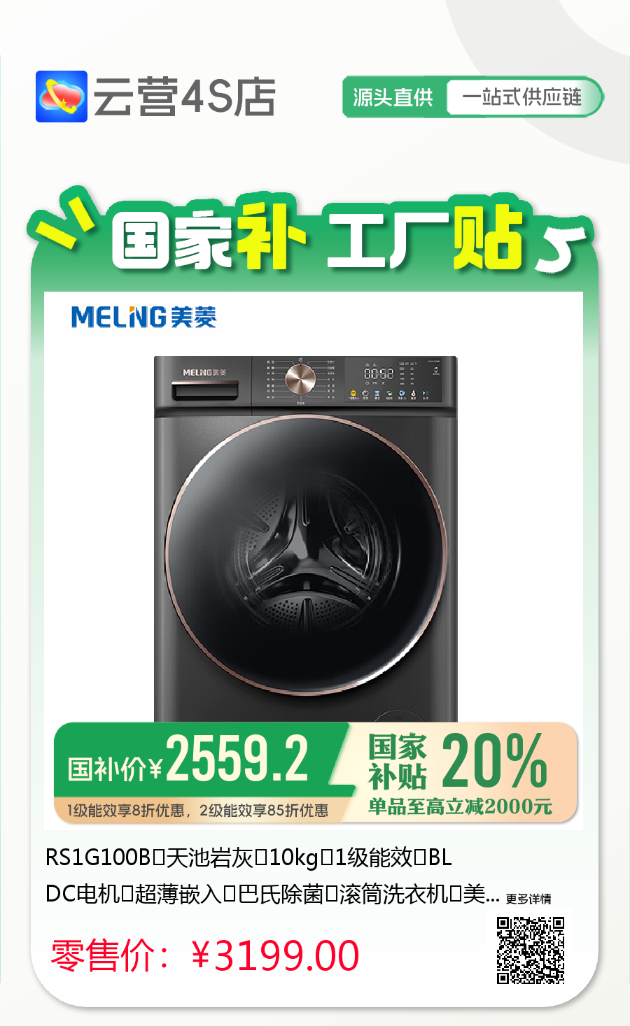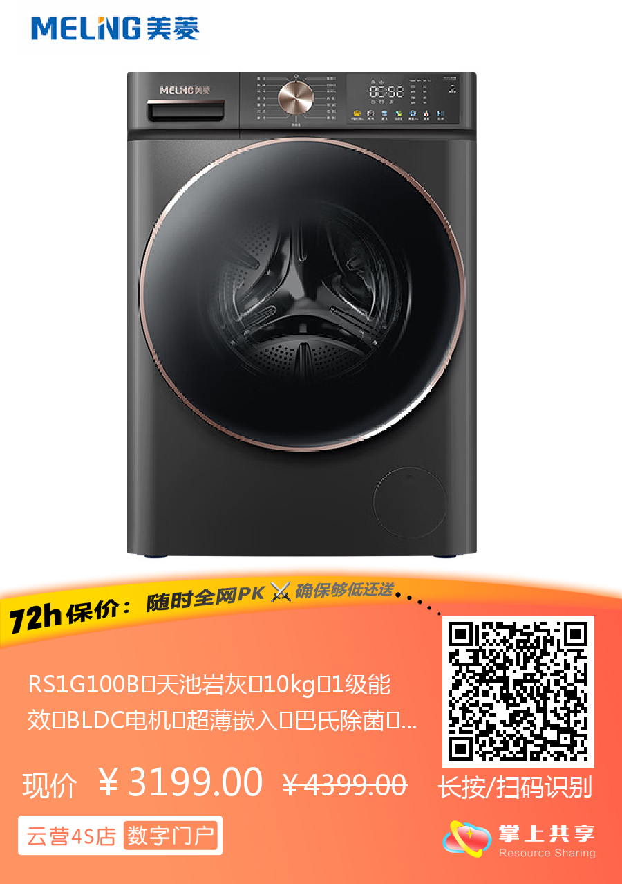 RS1G100B 天池岩灰 10kg 1级能效 BLDC电机 超薄嵌入 巴氏除菌 滚筒洗衣机 美菱(MeiLing) 如手洗系列
