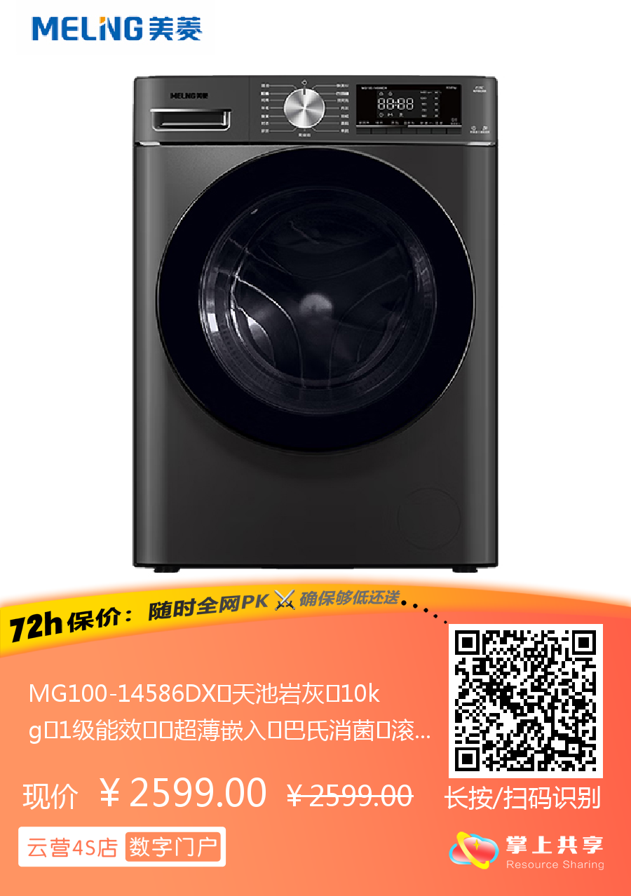 MG100-14586DX 天池岩灰 10kg 1级能效 超薄嵌入 巴氏消菌 滚筒洗衣机 美菱(MeiLing)
