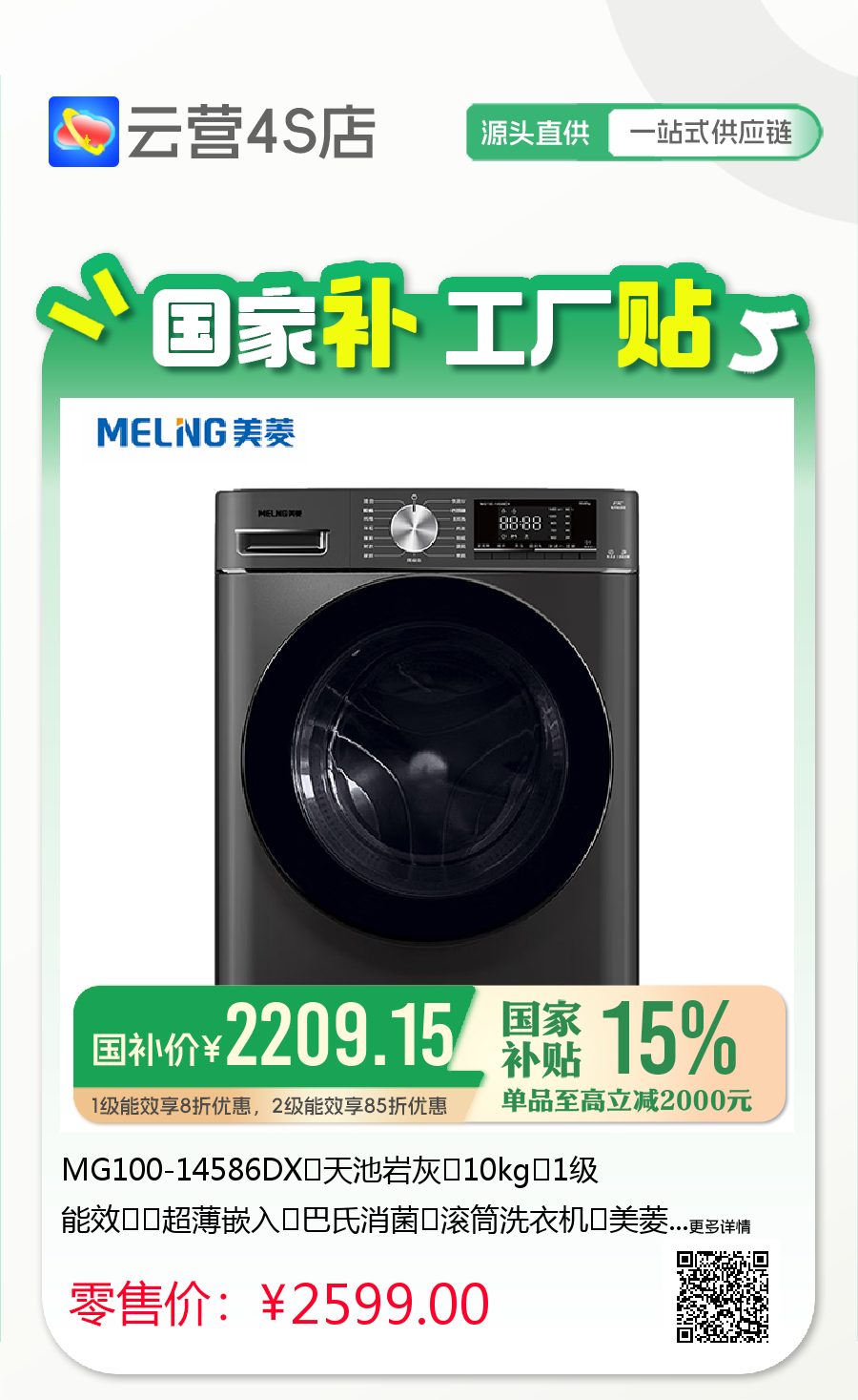 MG100-14586DX 天池岩灰 10kg 1级能效 超薄嵌入 巴氏消菌 滚筒洗衣机 美菱(MeiLing)