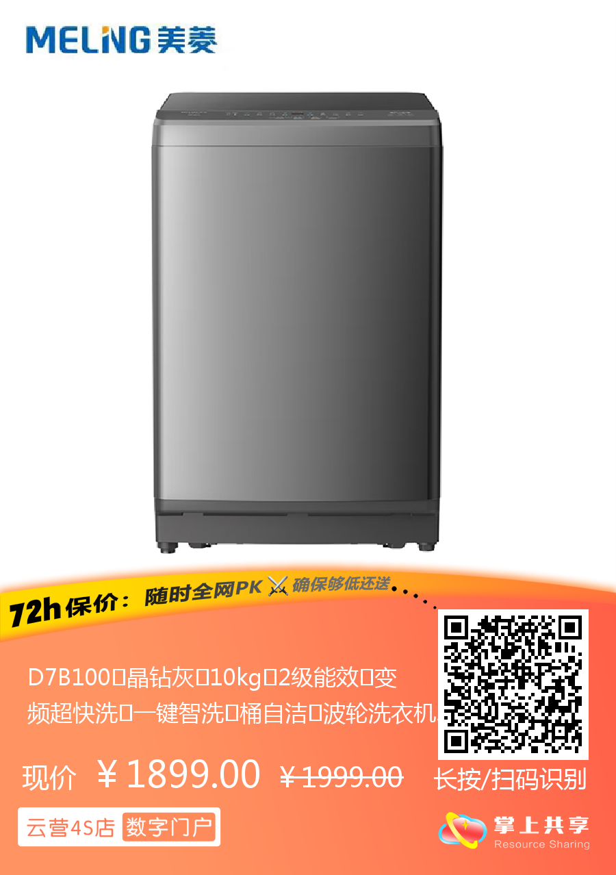D7B100 晶钻灰 10kg 2级能效 变频超快洗 一键智洗 桶自洁 波轮洗衣机 美菱(MeiLing) 大力神系列