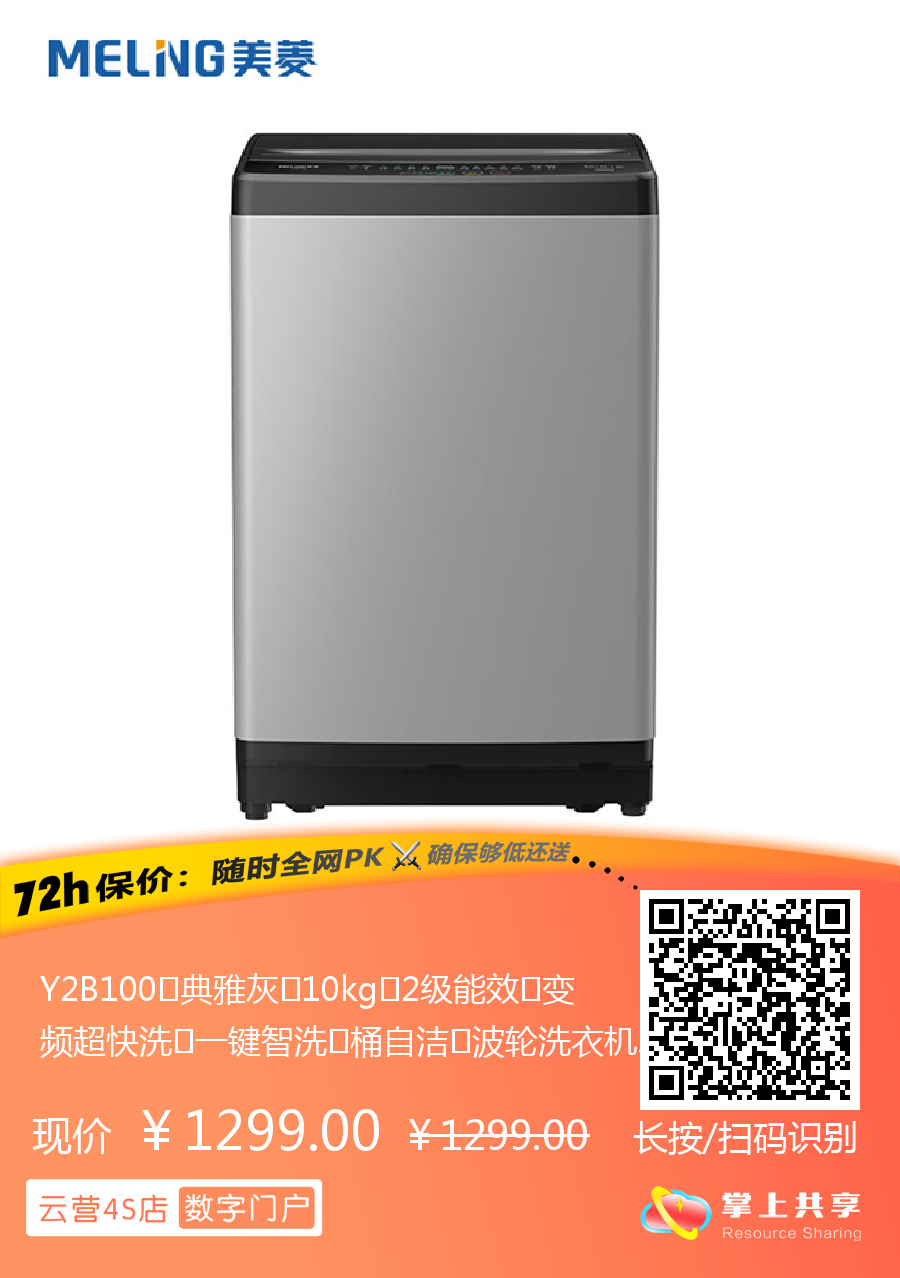 Y2B100 典雅灰 10kg 2级能效 变频超快洗 一键智洗 桶自洁 波轮洗衣机 美菱(MeiLing)