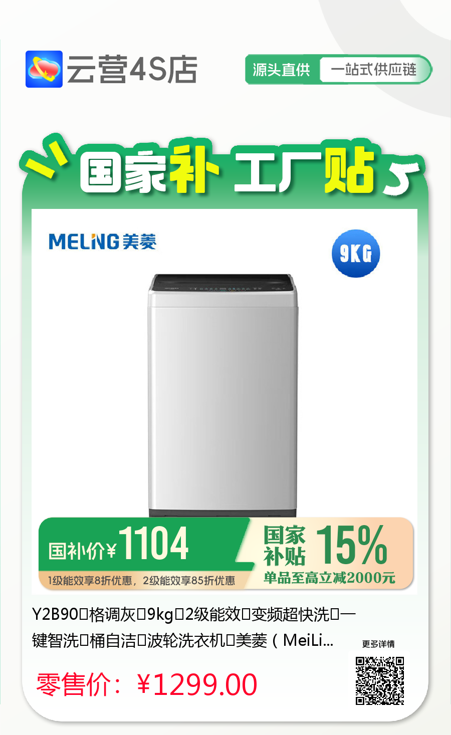 Y2B90 格调灰 9kg 2级能效 变频超快洗 一键智洗 桶自洁 波轮洗衣机 美菱(MeiLing)