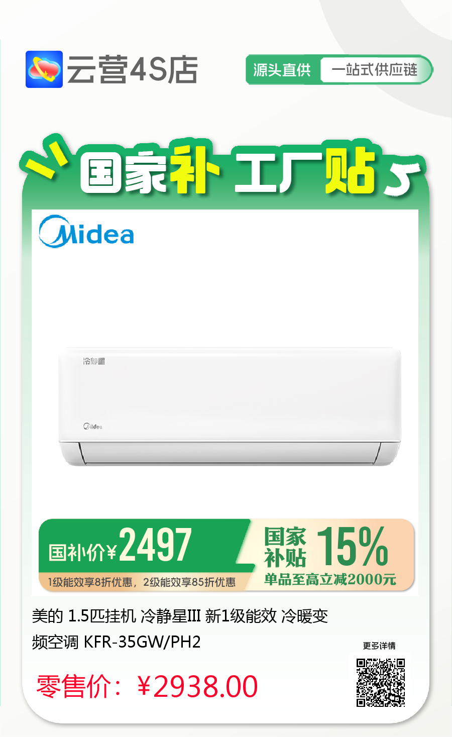 美的 1.5匹挂机 冷静星III 新1级能效 冷暖变频空调 KFR-35GW/PH2