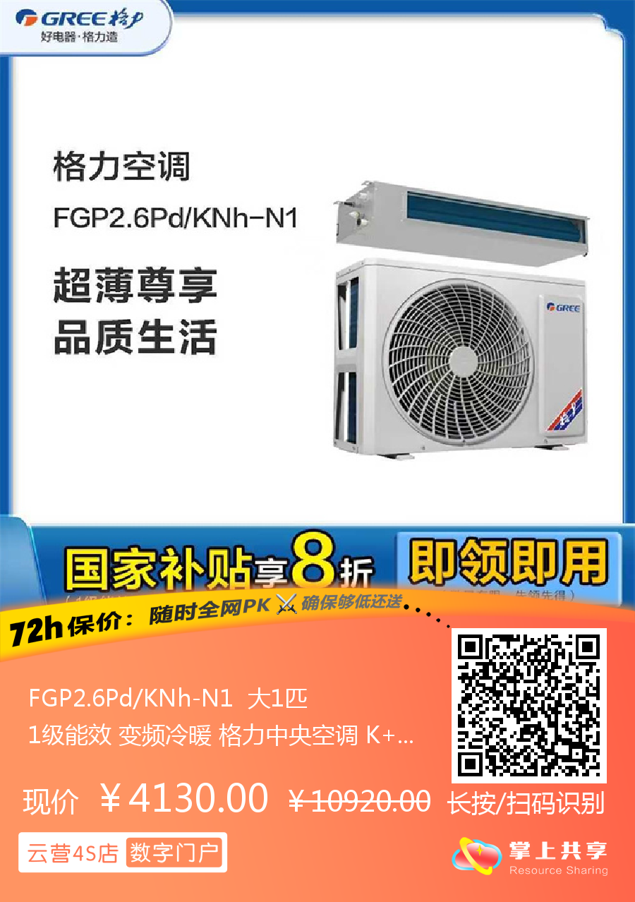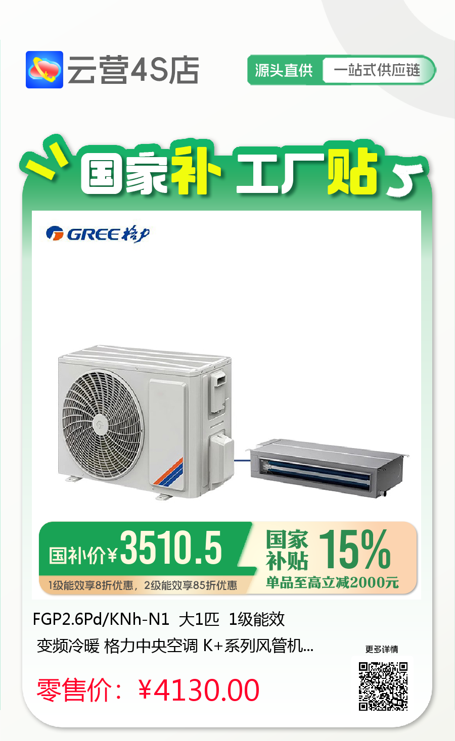 FGP2.6Pd/KNh-N1 大1匹 1级能效 变频冷暖 格力中央空调 K+系列风管机