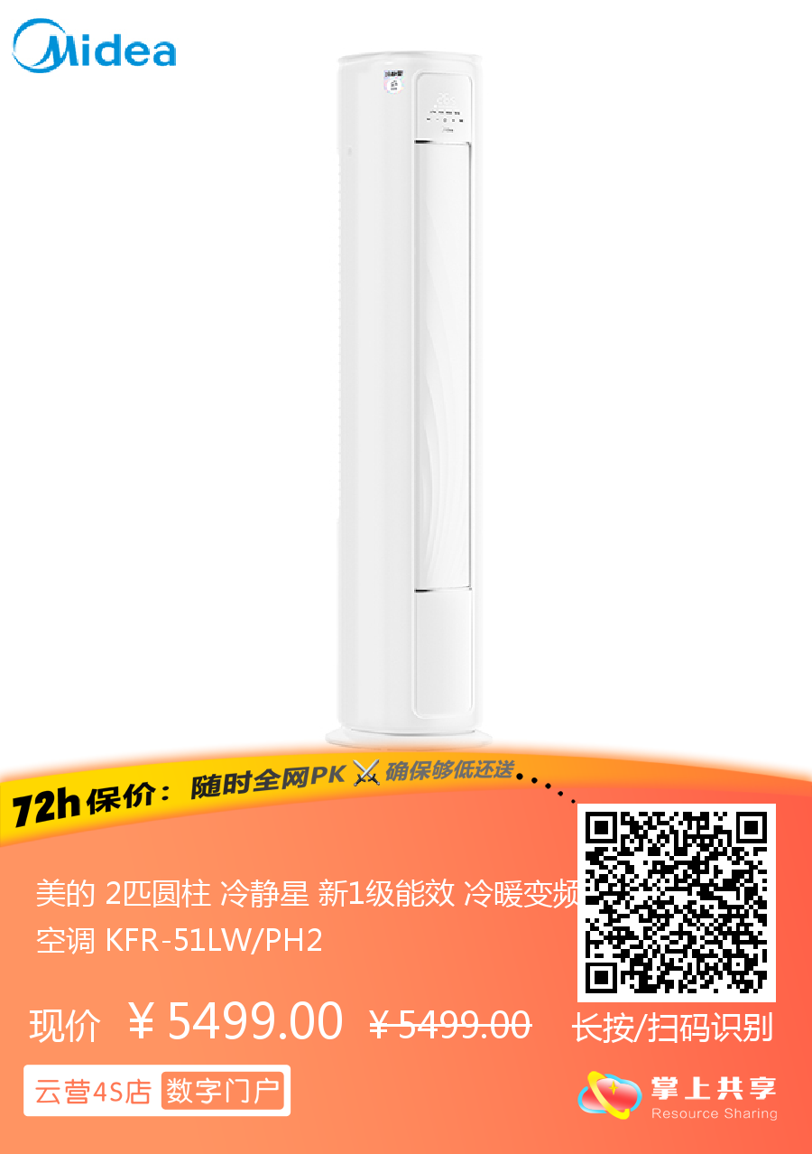 美的 2匹圆柱 冷静星 新1级能效 冷暖变频空调 KFR-51LW/PH2