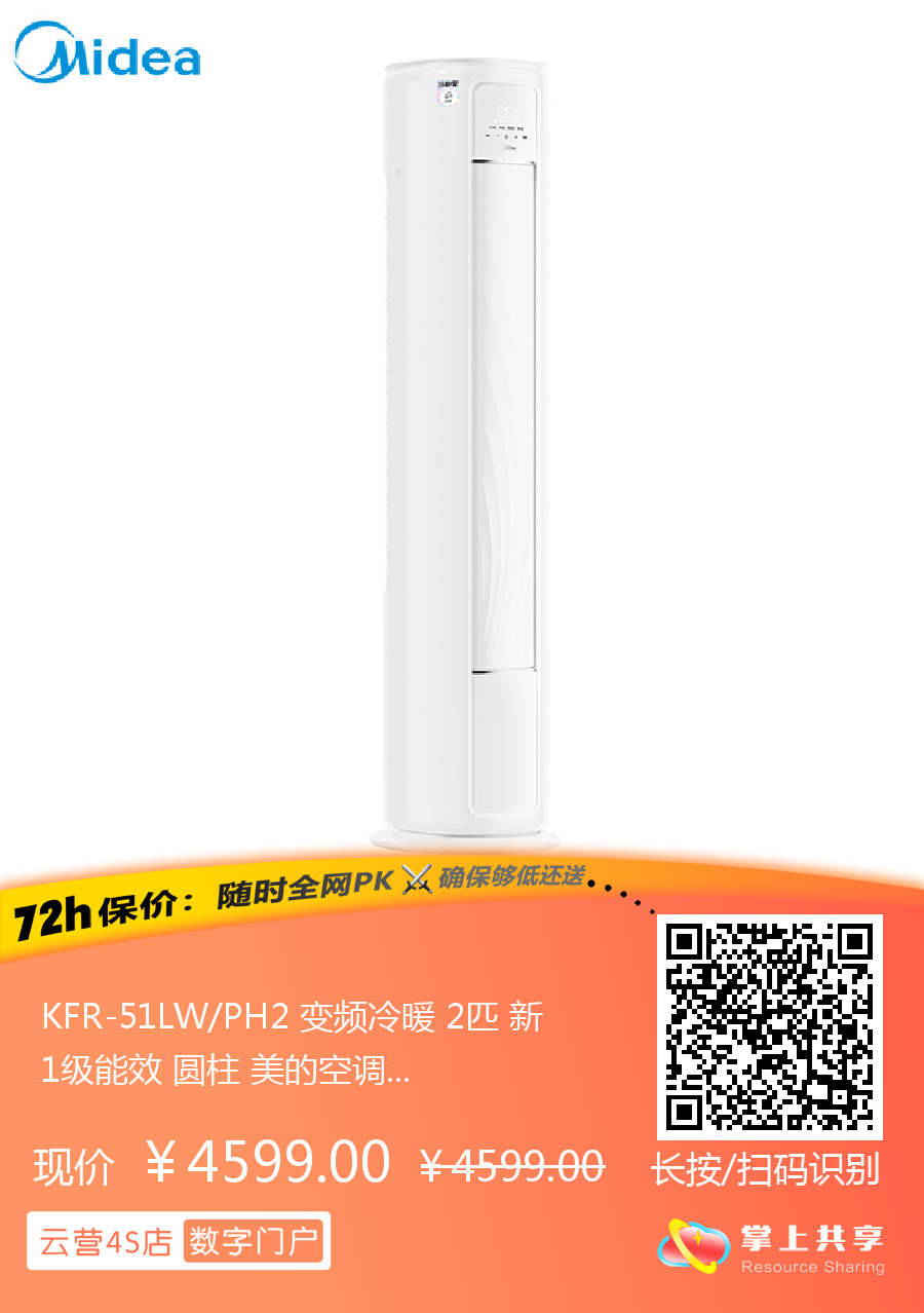美的 2匹圆柱 冷静星 新1级能效 冷暖变频空调 KFR-51LW/PH2