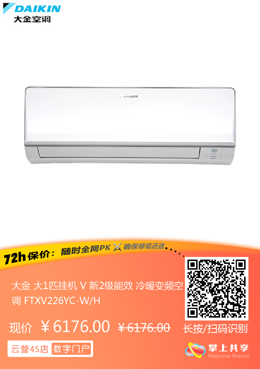 大金 大1匹挂机 V 新2级能效 冷暖变频空调 FTXV226YC-W/H