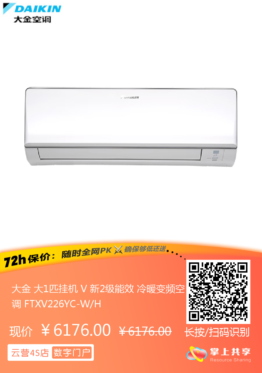 大金 大1匹挂机 V 新2级能效 冷暖变频空调 FTXV226YC-W/H