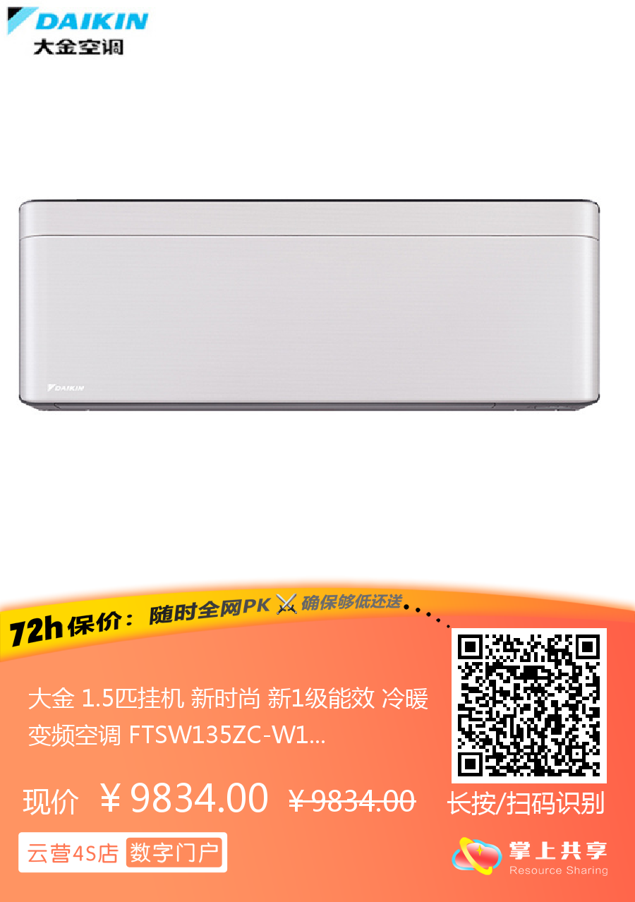 大金 1.5匹挂机 新时尚 新1级能效 冷暖变频空调 FTSW135ZC-W1