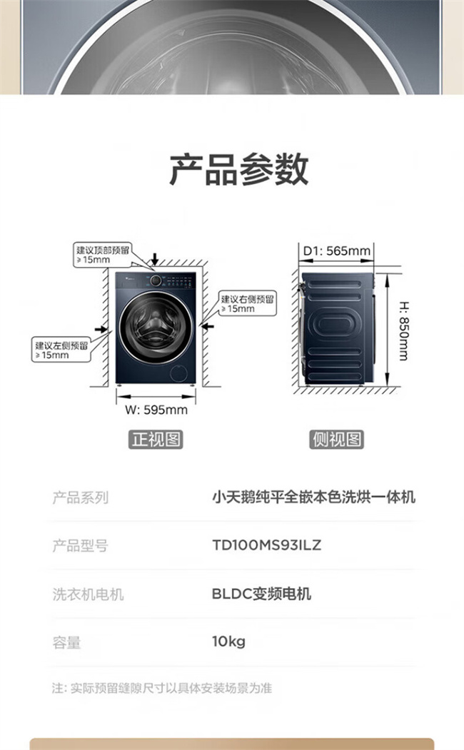 小天鹅全自动滚筒洗衣机 10公斤 洗烘一体 变频除菌 TG100MS93ILZ