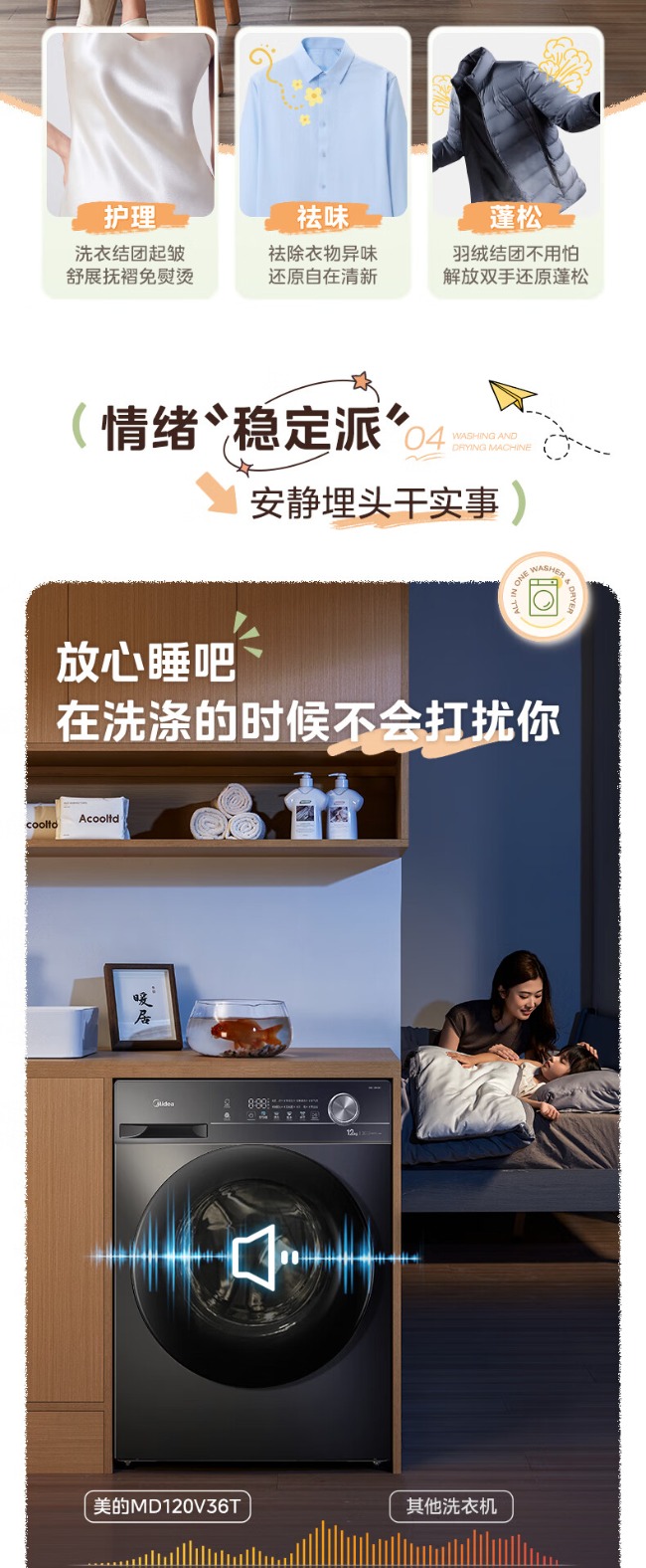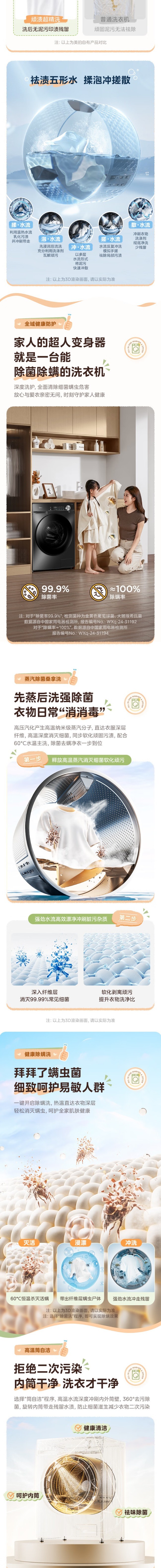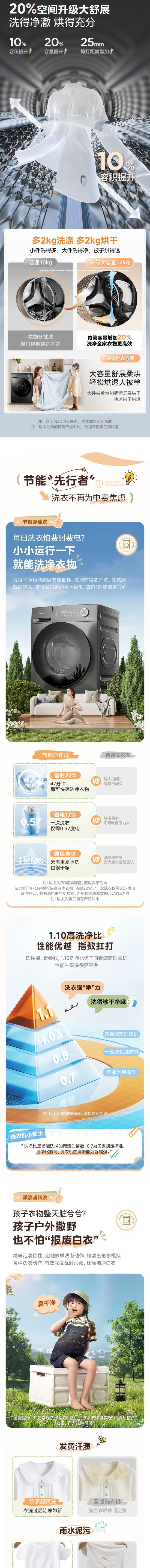 美的全自动滚筒洗衣机 12公斤 变频除菌 1级能效 MG120V36T