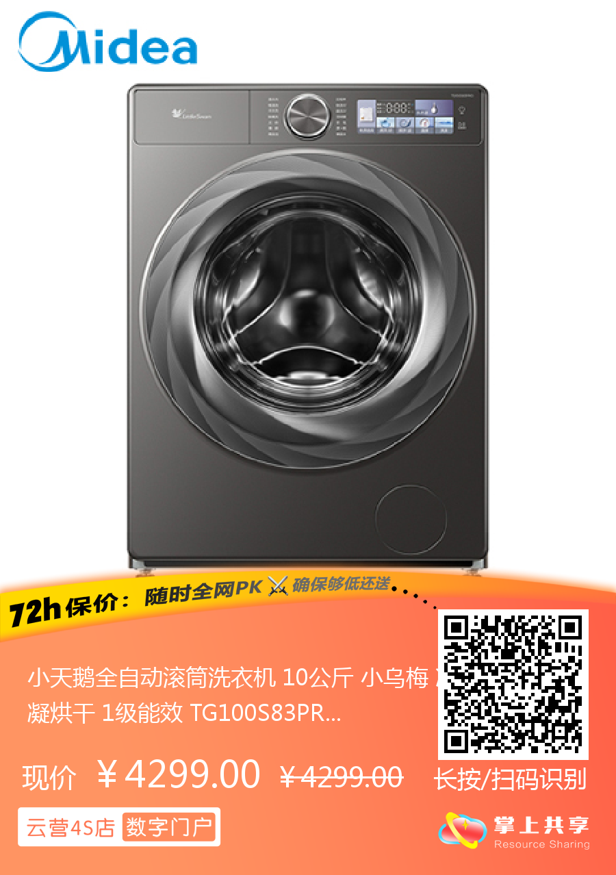 小天鹅全自动滚筒洗衣机 10公斤 小乌梅 冷凝烘干 1级能效 TG100S83PRO