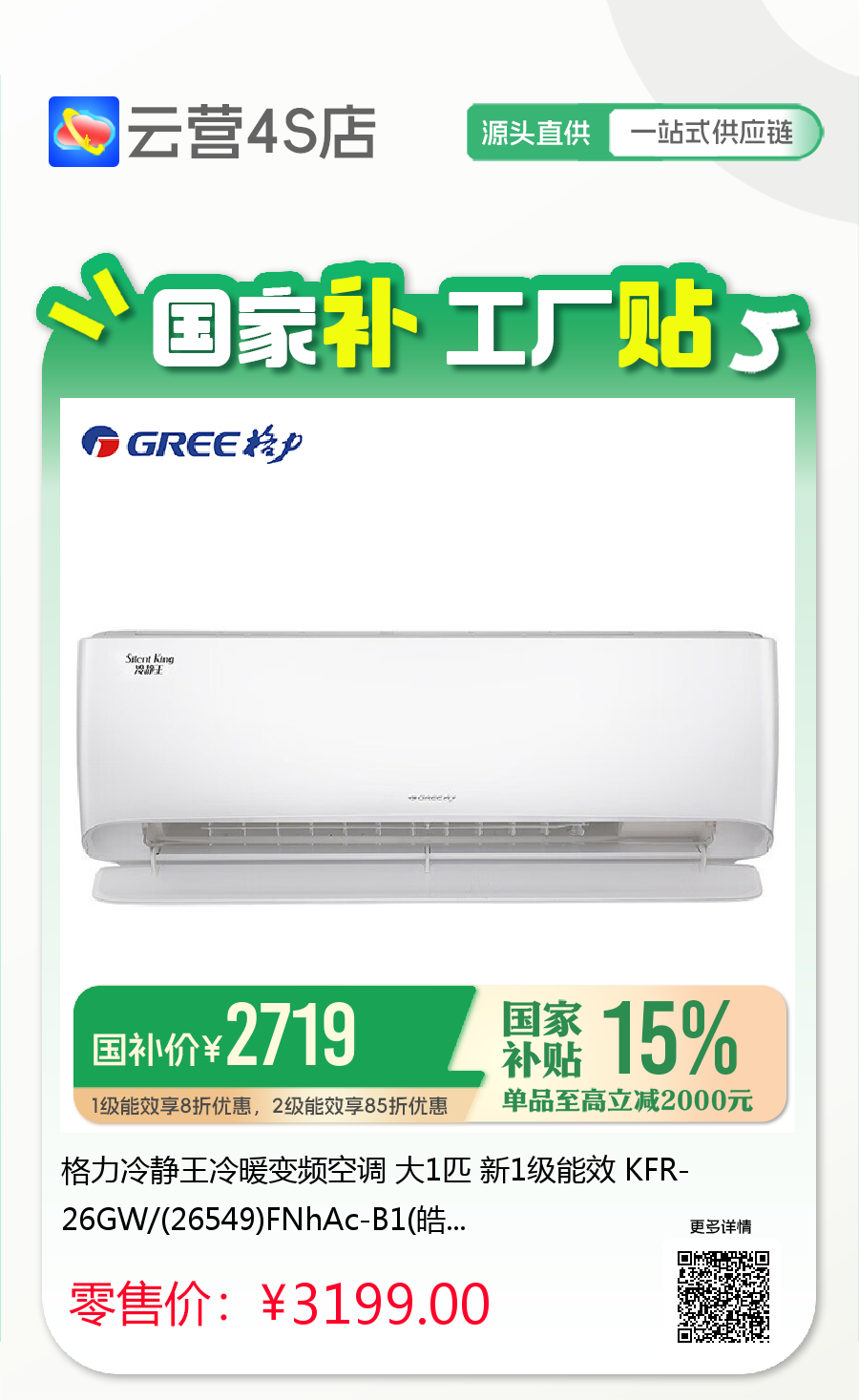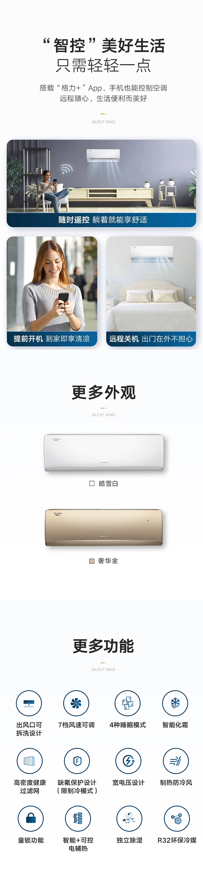 格力冷静王冷暖变频空调 大1匹 新1级能效 KFR-26GW/(26549)FNhAc-B1(皓雪白)