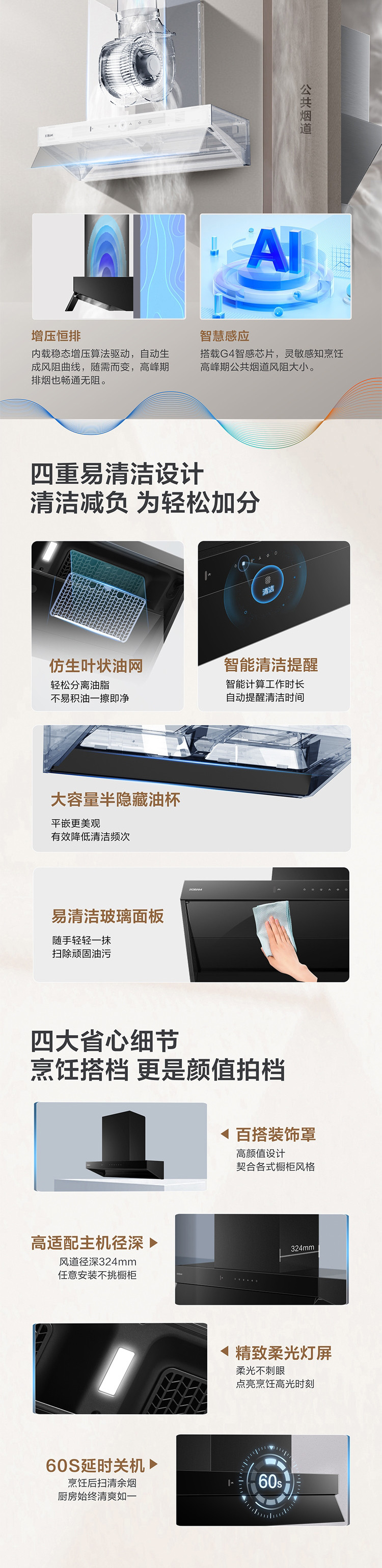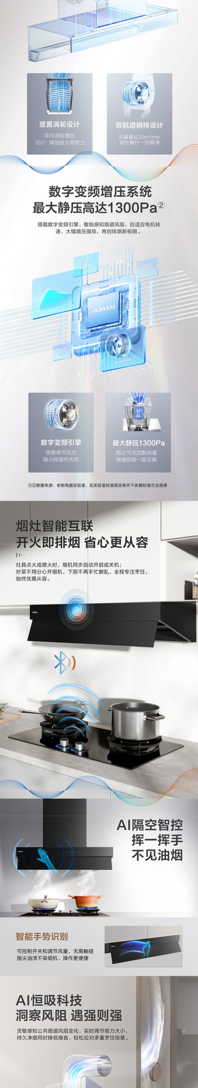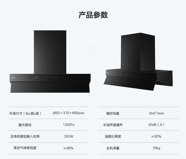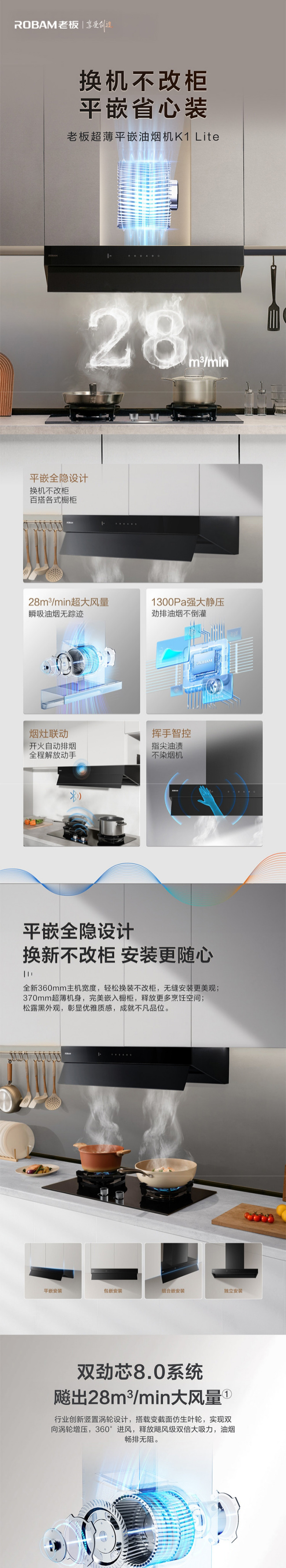 老板Robam超薄平嵌油烟机 28m³/min大吸力 1270Pa 1级能效 CXW-260-8665-K1L