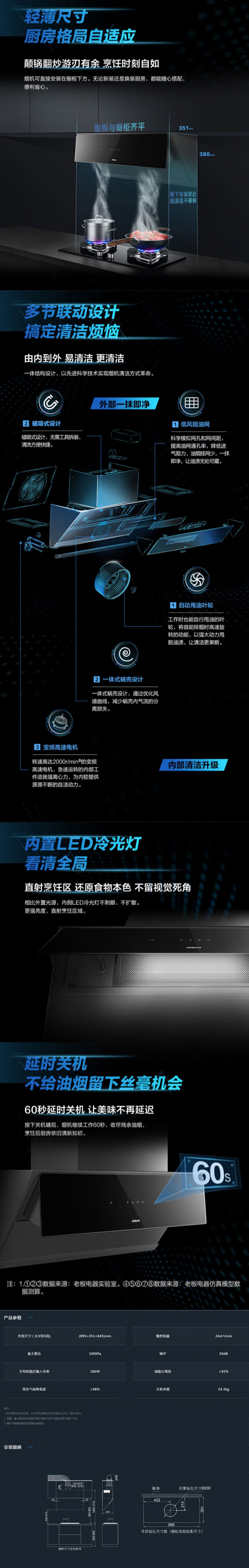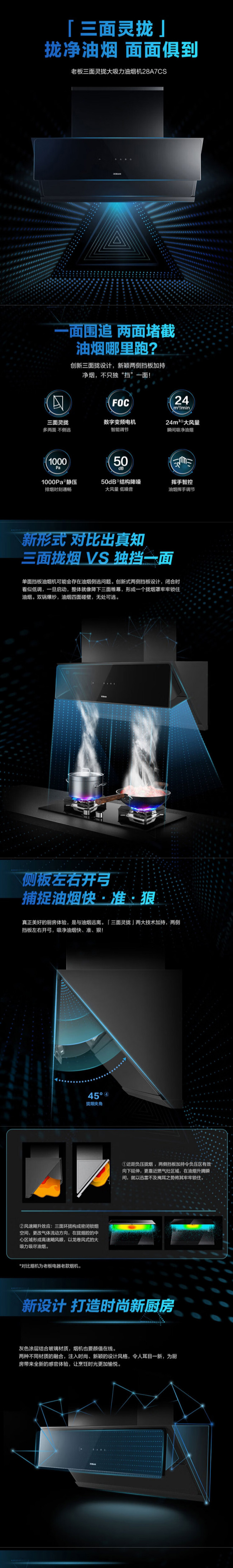 老板Robam侧吸油烟机 24m³/min吸力 1000Pa 1级能效 CXW-260-28A7CS