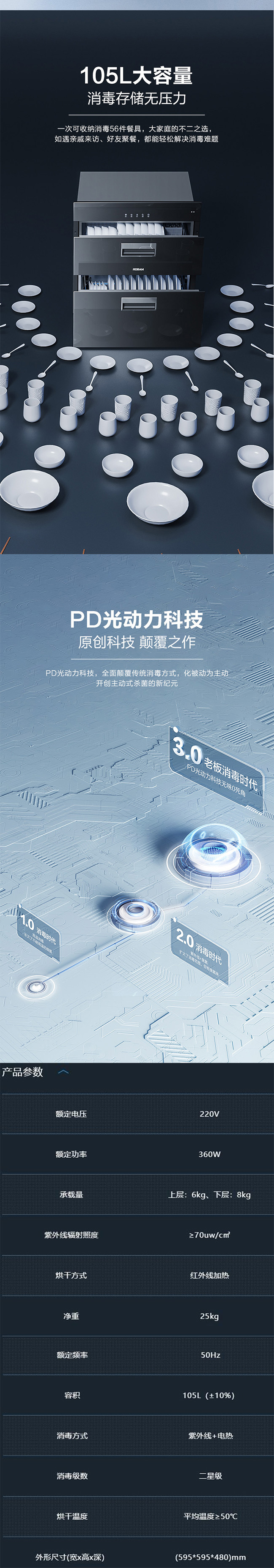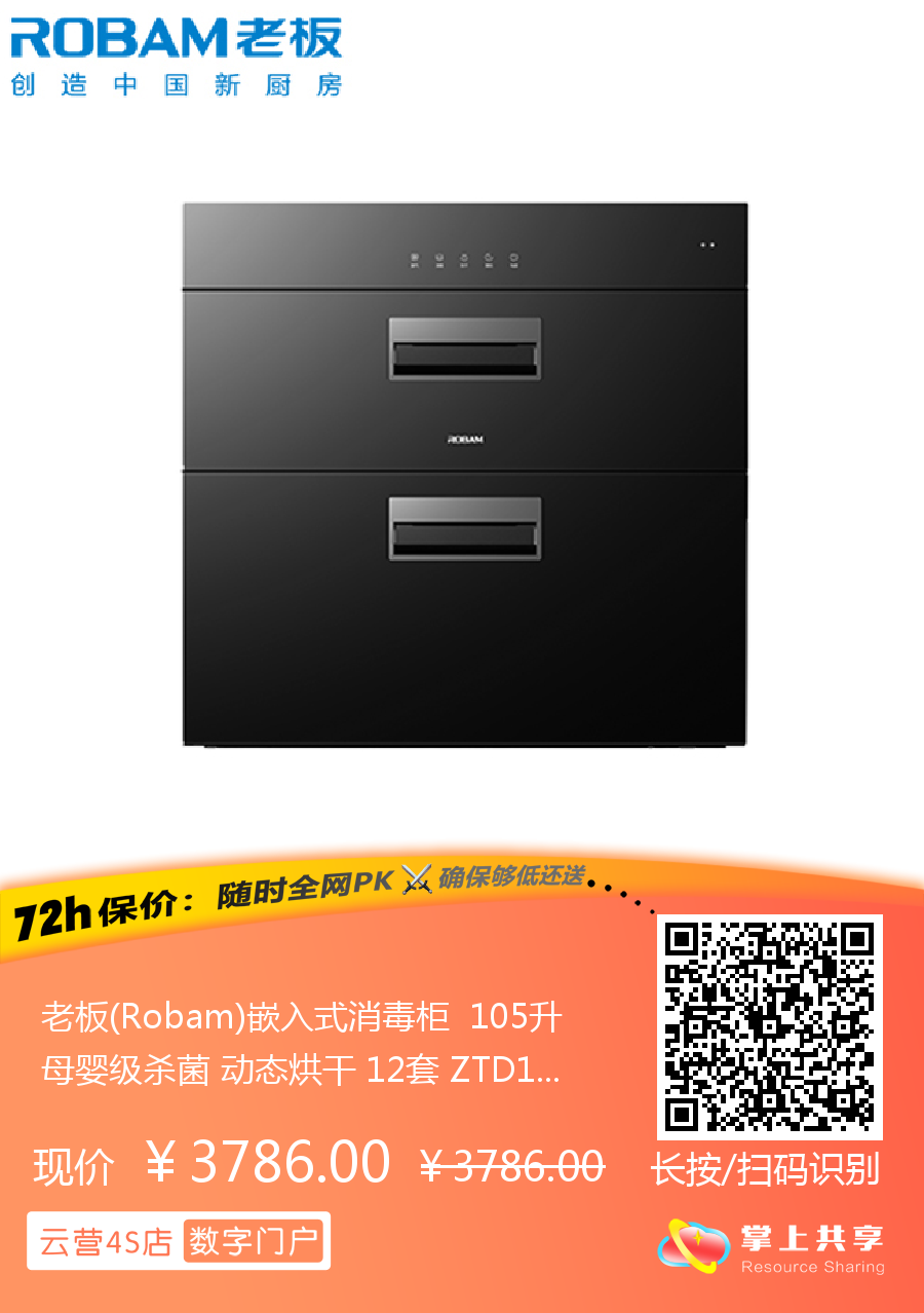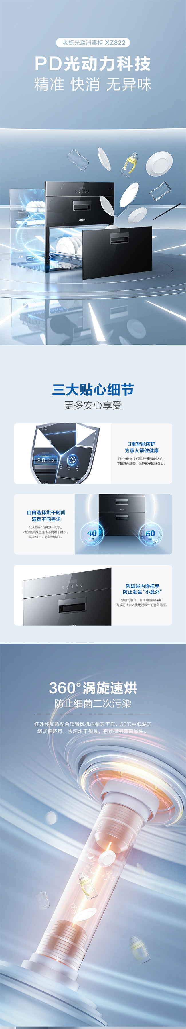 老板(Robam)嵌入式消毒柜 105升 母婴级杀菌 动态烘干 12套 ZTD105Z-XZ822