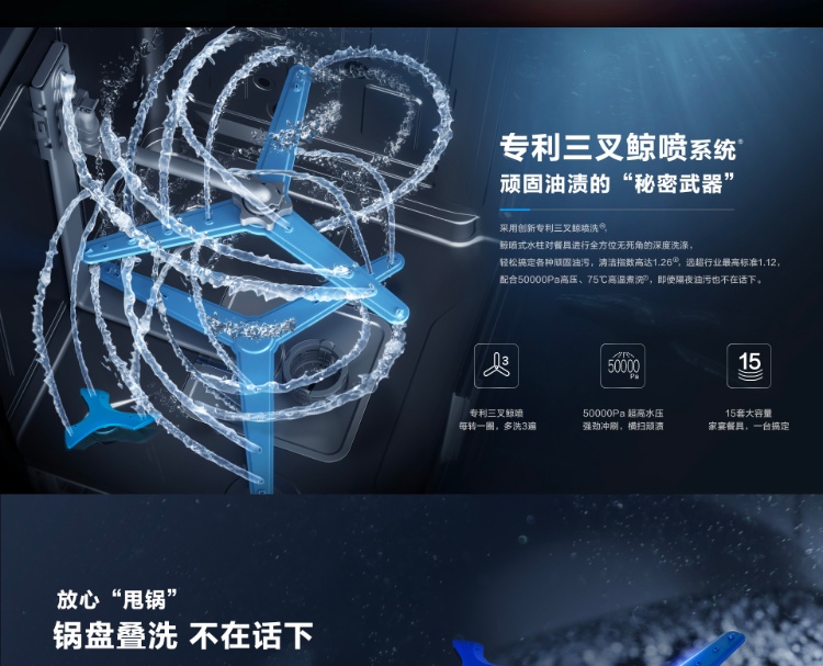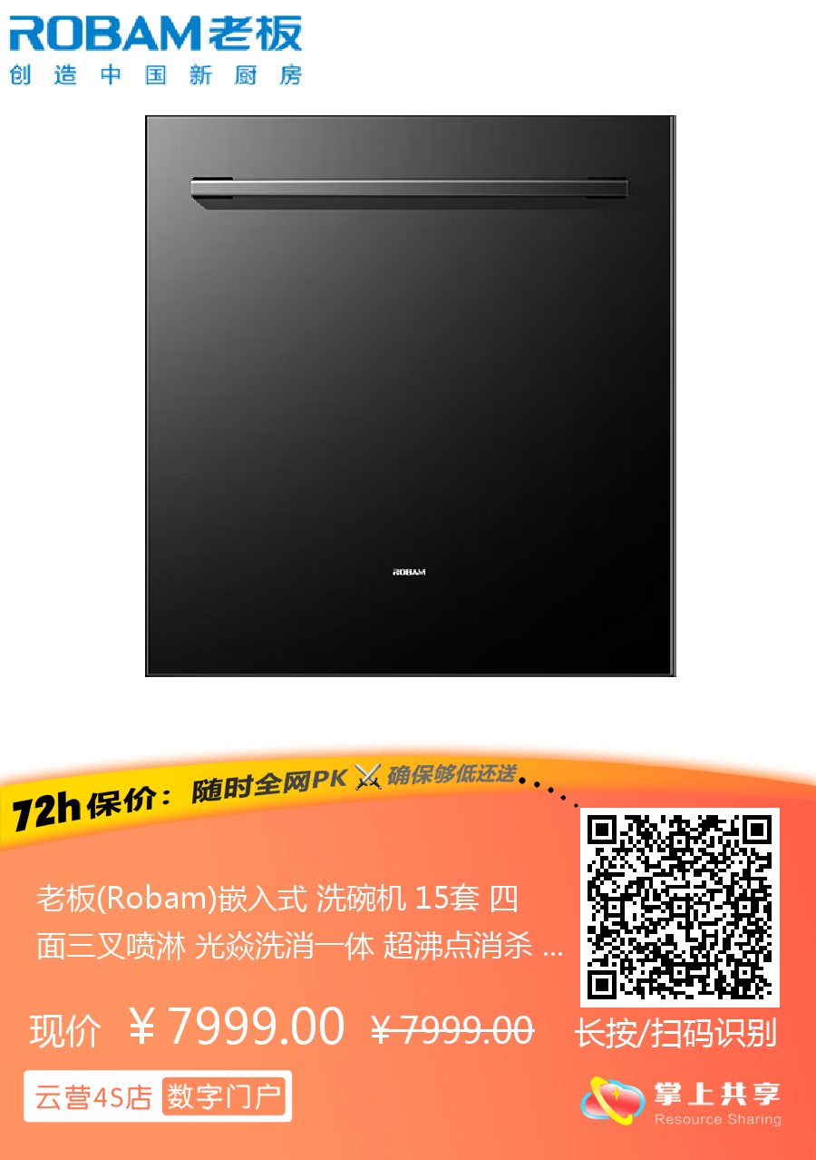 老板(Robam)嵌入式 洗碗机 15套 四面三叉喷淋 光焱洗消一体 超沸点消杀 W76-S1L