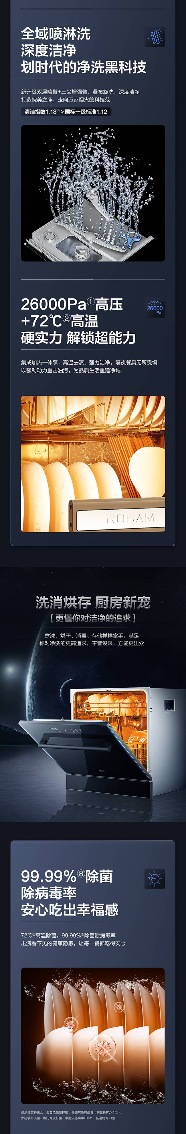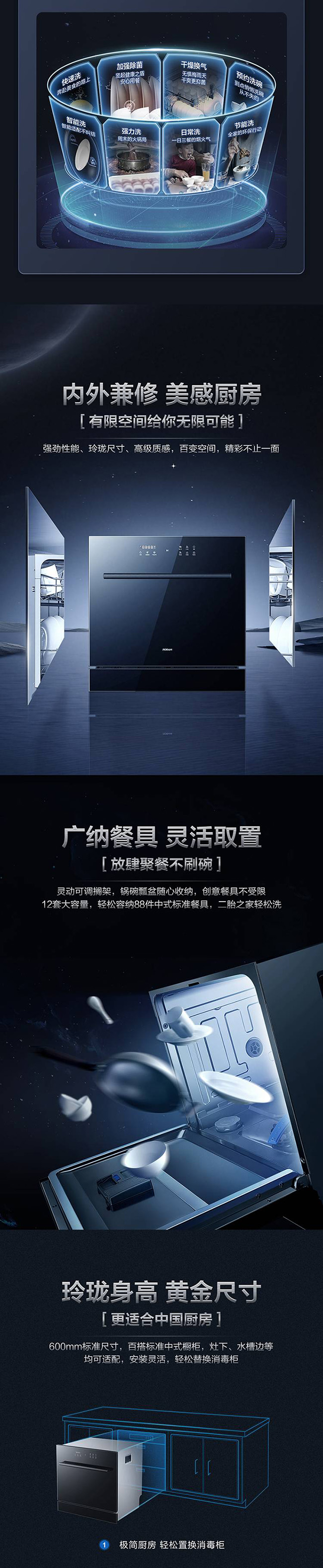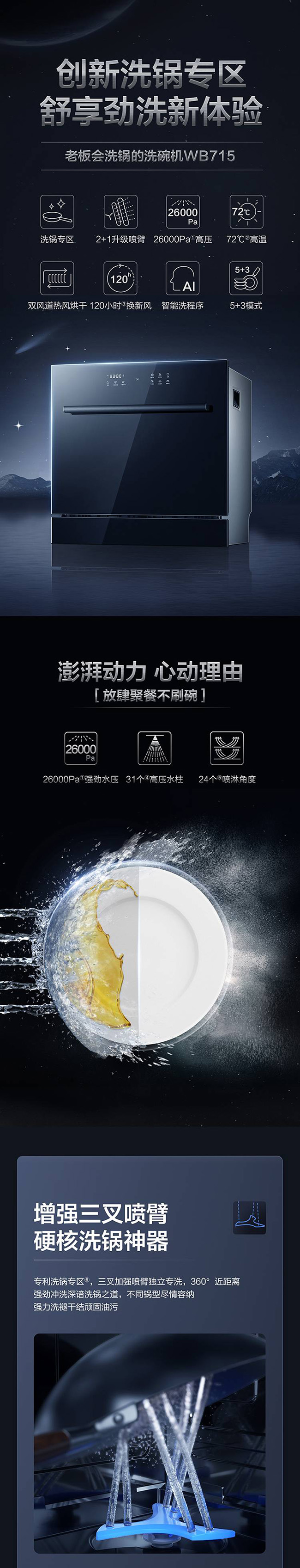 老板(Robam)嵌入式 洗碗机 12套 四面三叉喷淋 洗消烘存 WB715