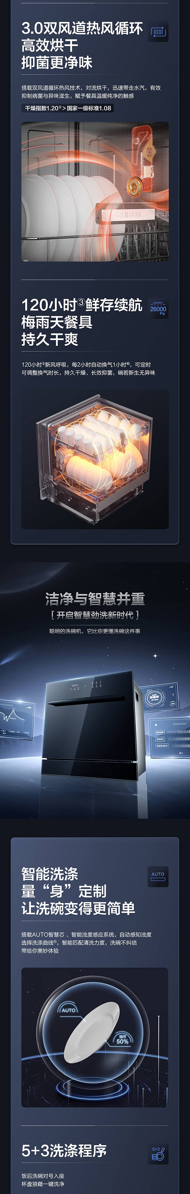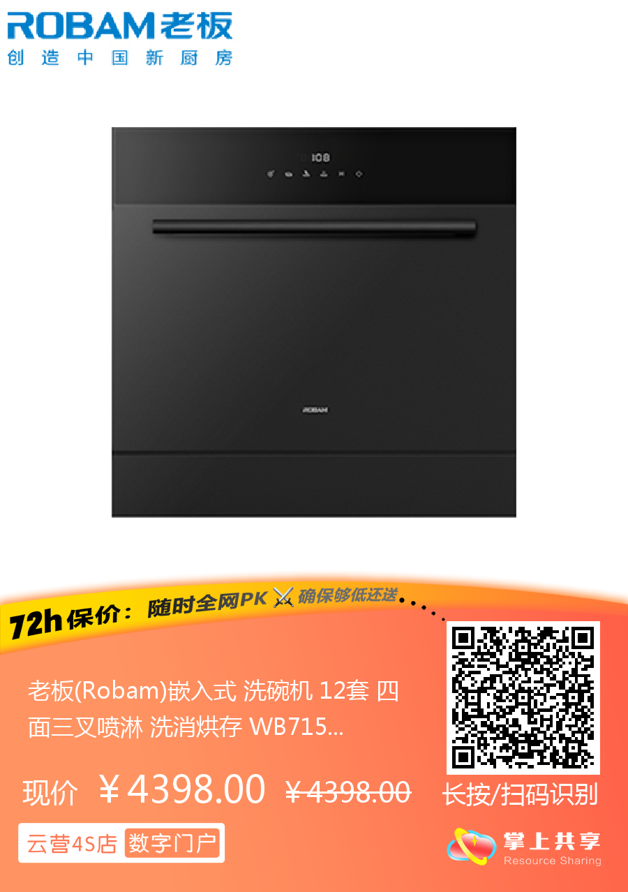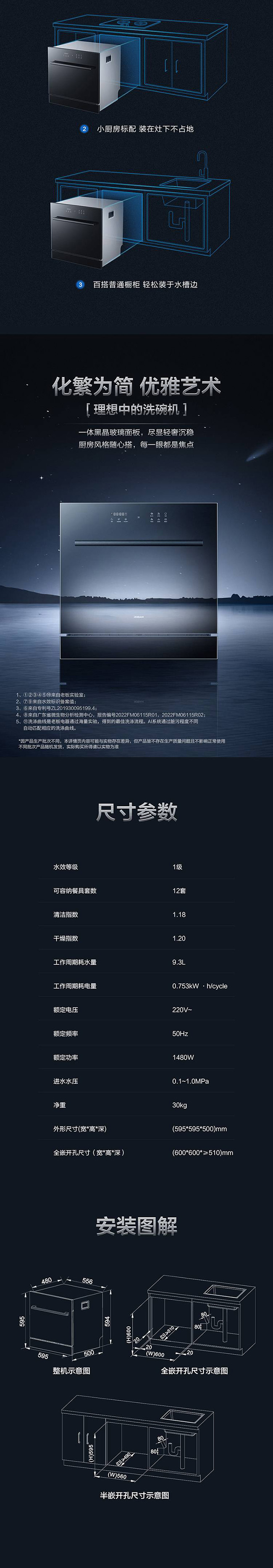老板(Robam)嵌入式 洗碗机 12套 四面三叉喷淋 洗消烘存 WB715