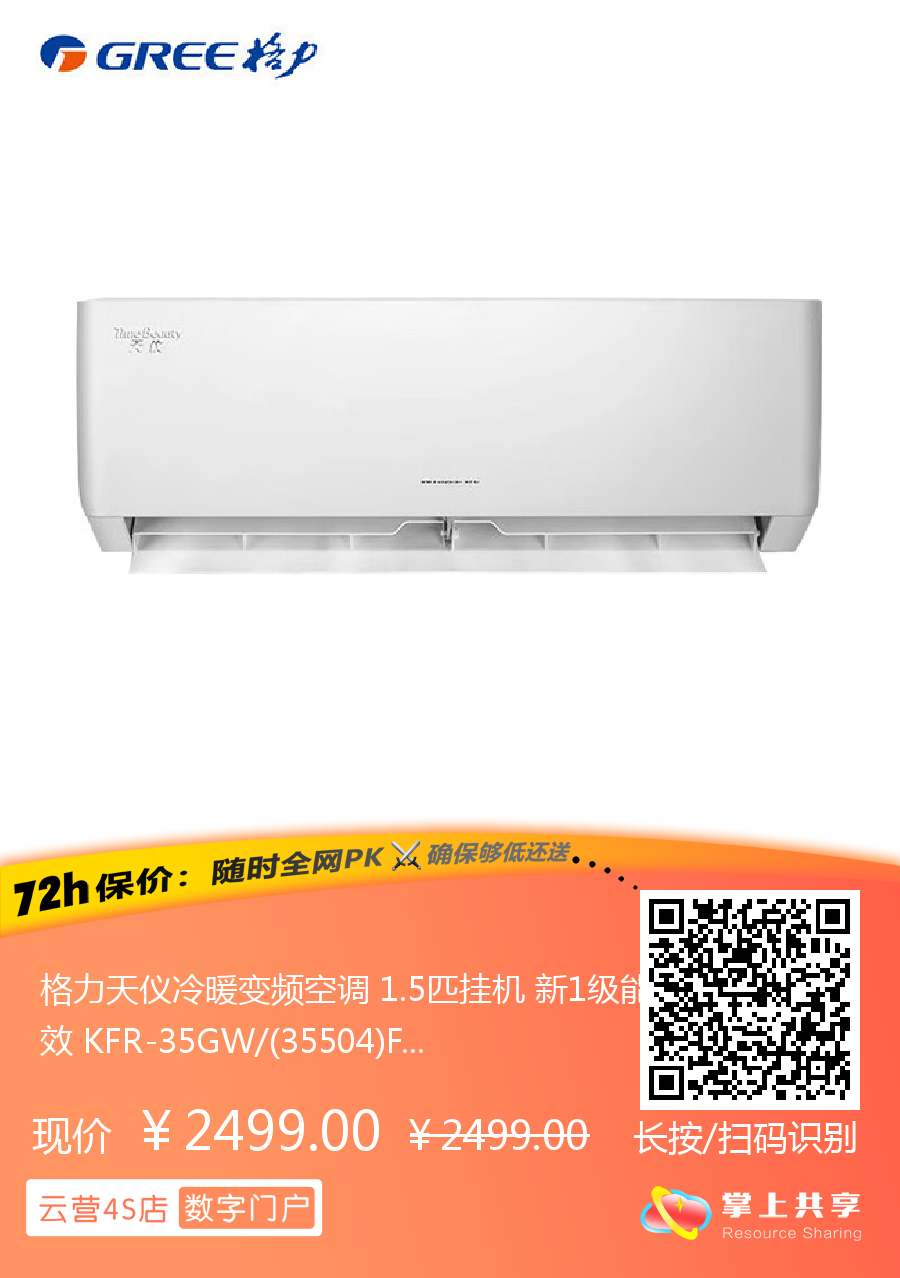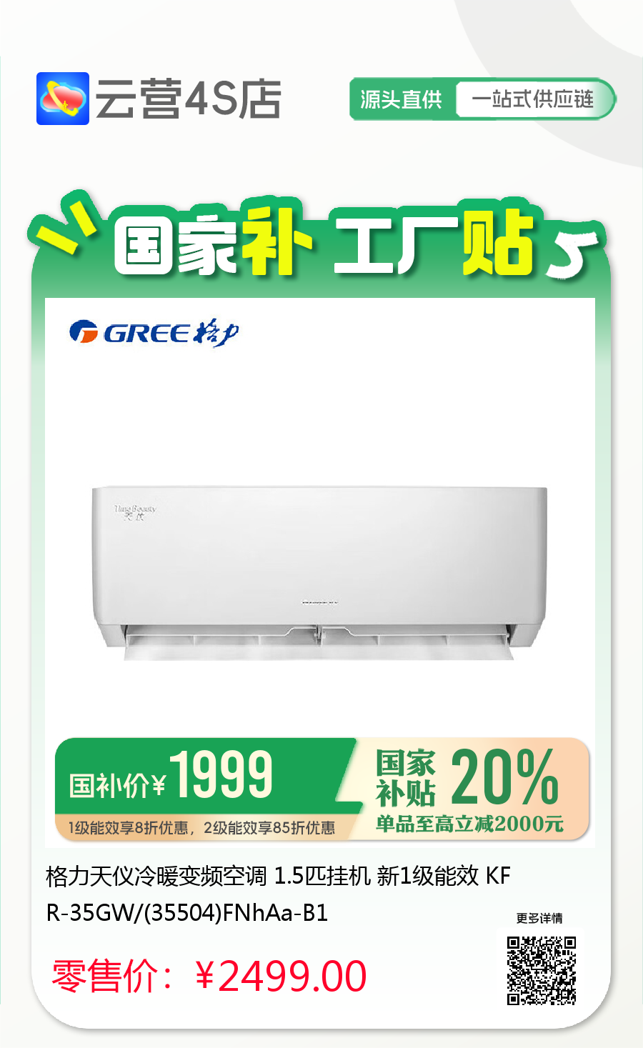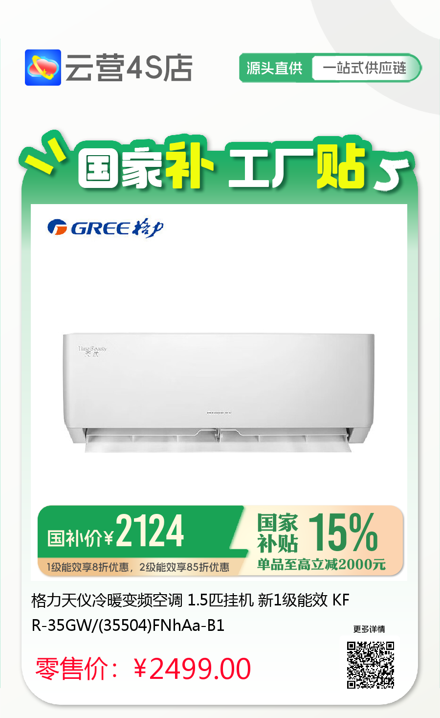 格力天仪冷暖变频空调 1.5匹挂机 新1级能效 KFR-35GW/(35504)FNhAa-B1