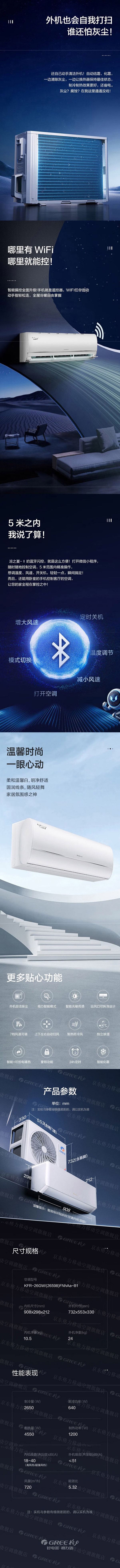 格力 大1匹挂机 凉之夏Ⅱ 新1级能效 冷暖变频空调 KFR-26GW/(26598)FNhAa-B1(WIFI)(温馨白)