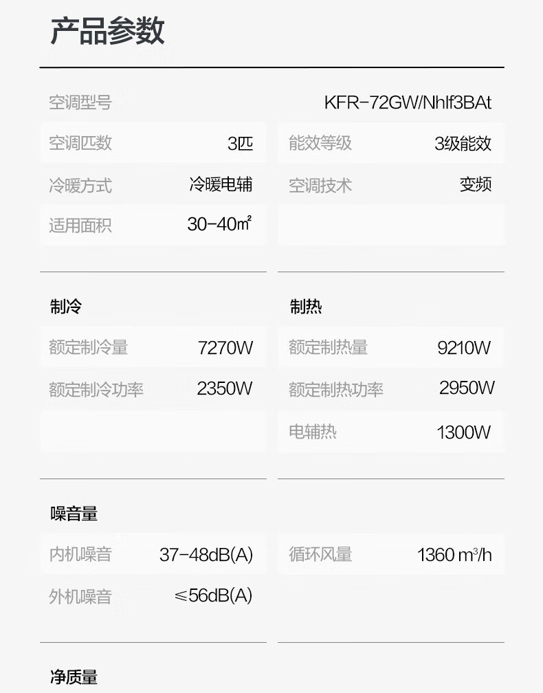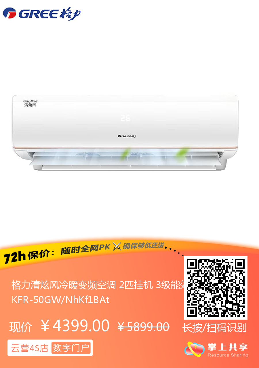 格力清炫风冷暖变频空调 2匹挂机 3级能效 KFR-50GW/NhKf1BAt