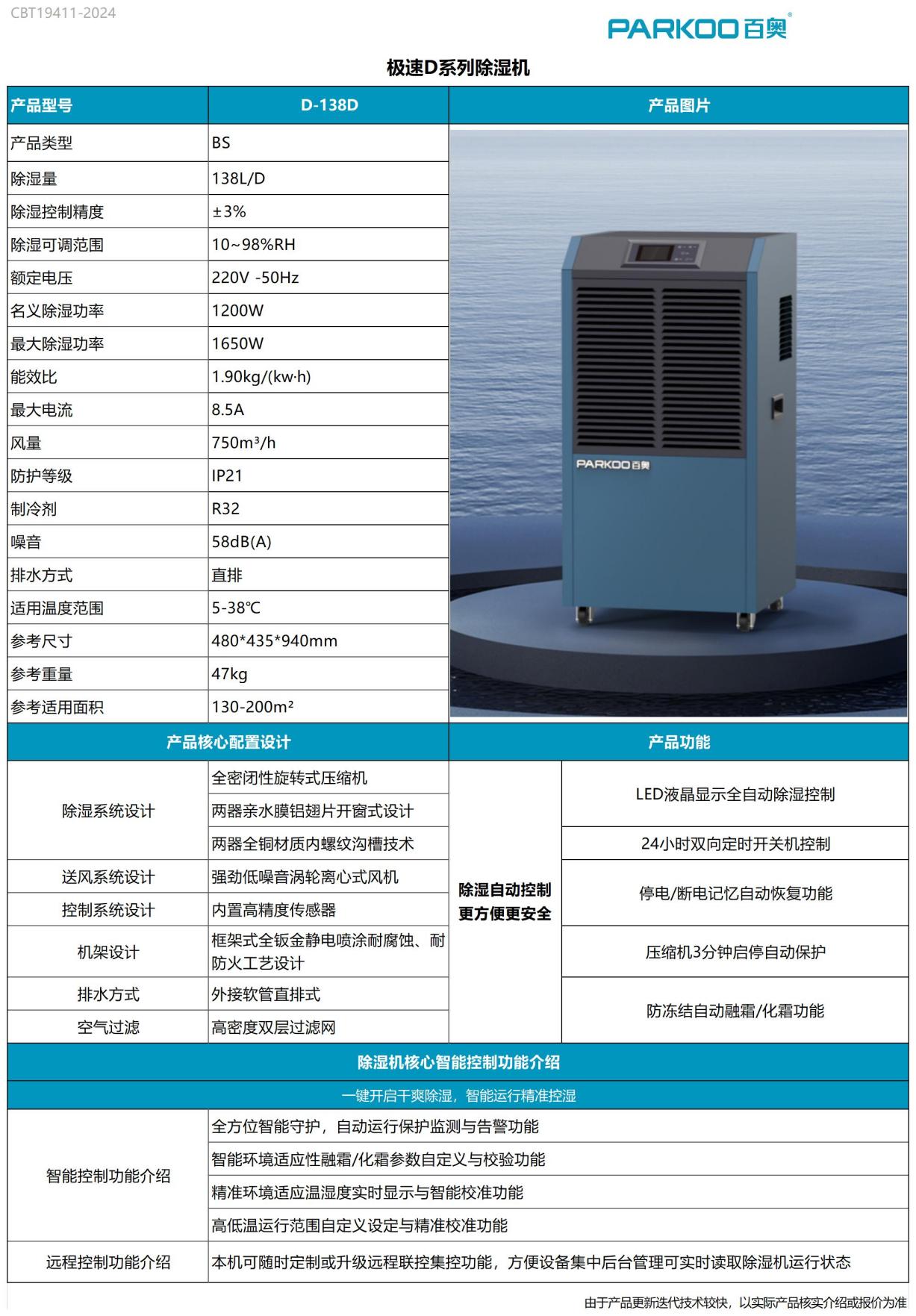 百奥商住两用直排除湿机 除湿量138升/日 直排 极速D系列 D-138D