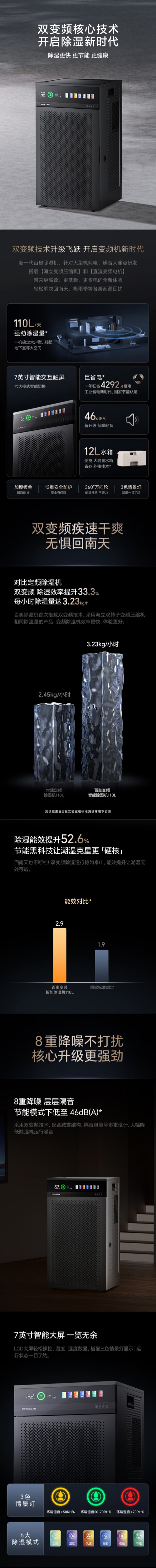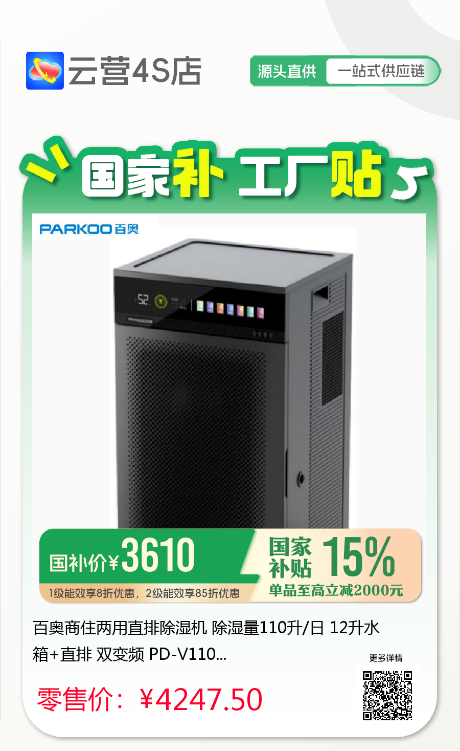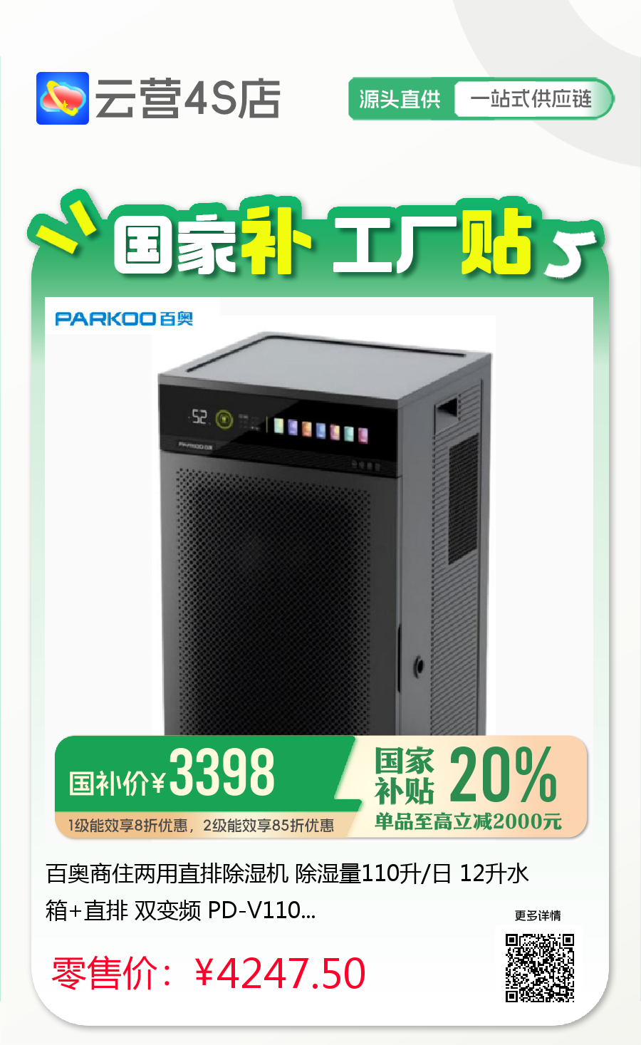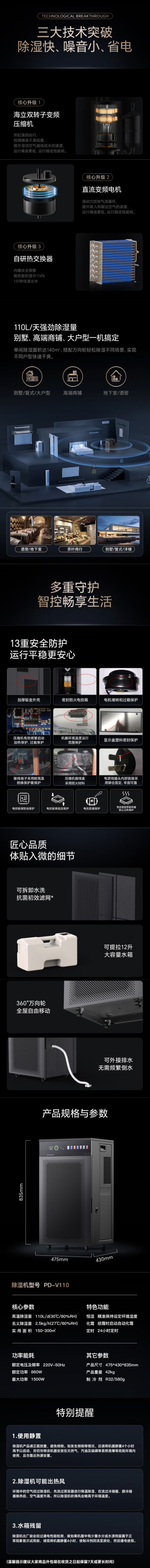 百奥商住两用直排除湿机 除湿量110升/日 12升水箱+直排 双变频 PD-V110