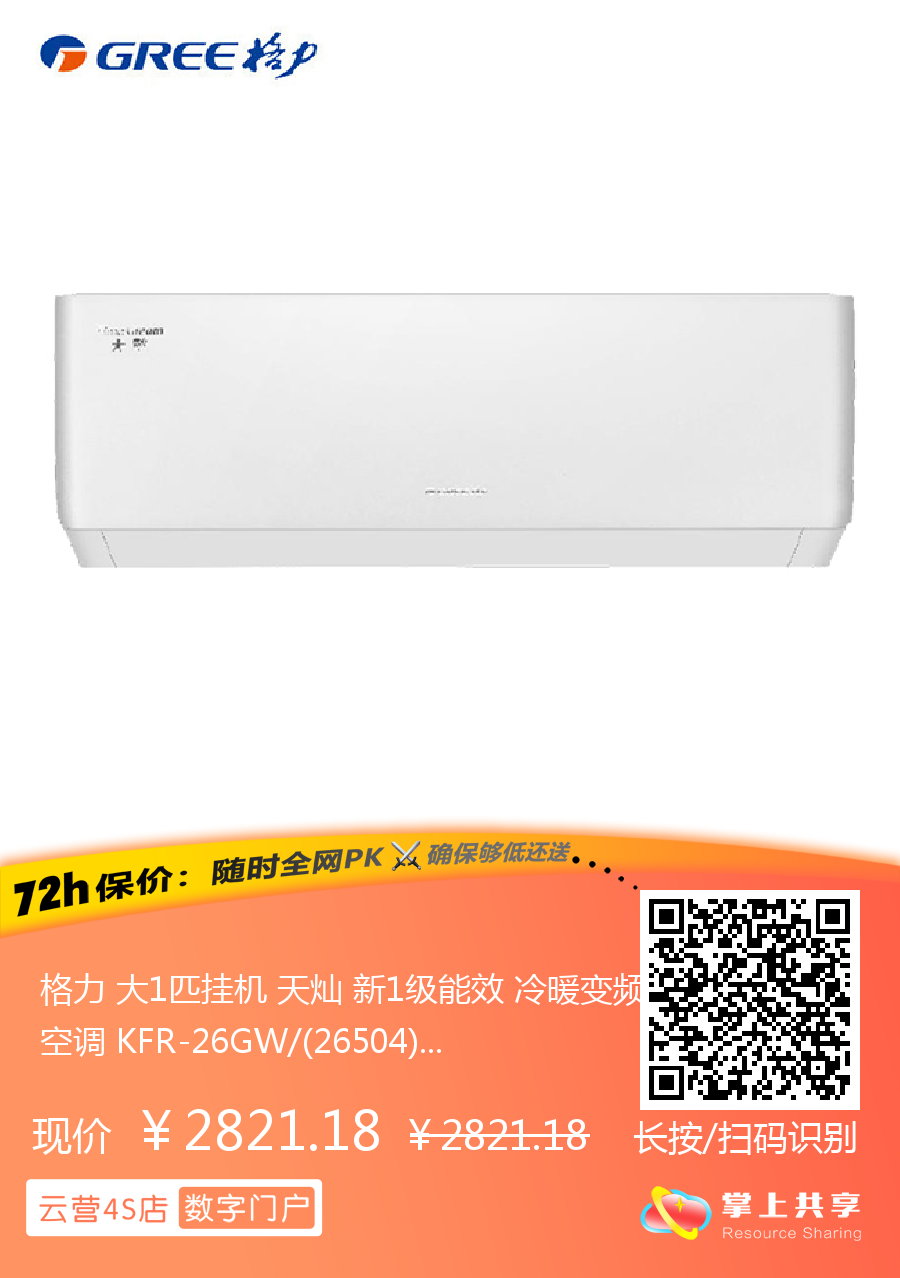 格力 大1匹挂机 天灿 新1级能效 冷暖变频空调 KFR-26GW/(26504)FNhAc-B1