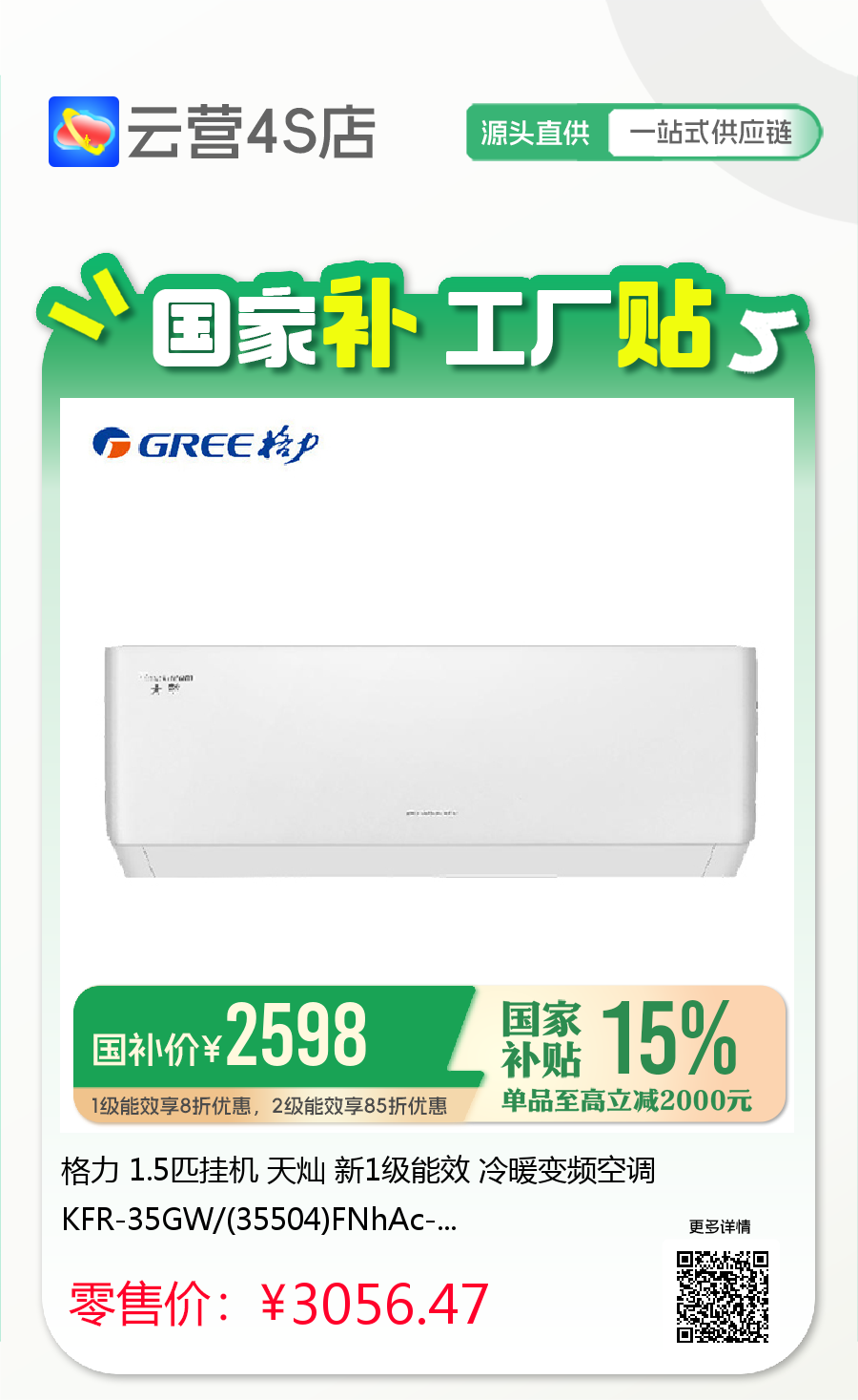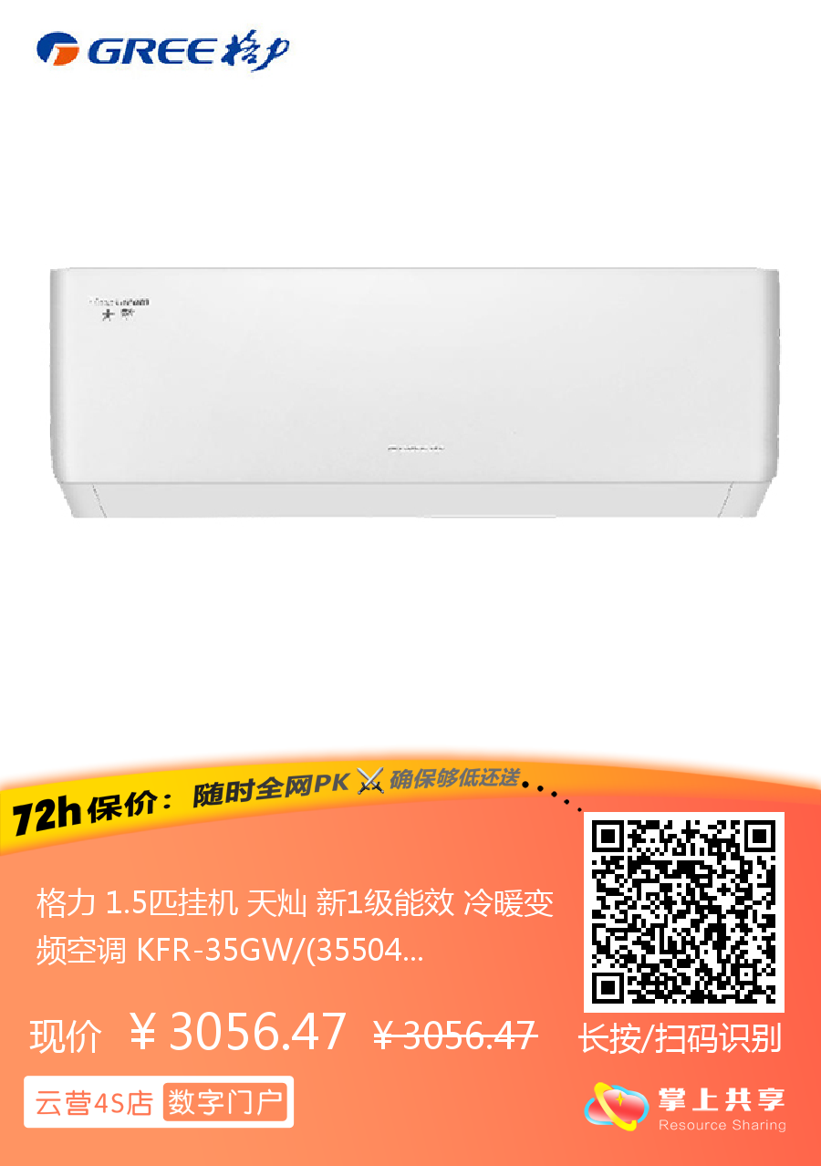 格力 1.5匹挂机 天灿 新1级能效 冷暖变频空调 KFR-35GW/(35504)FNhAc-B1