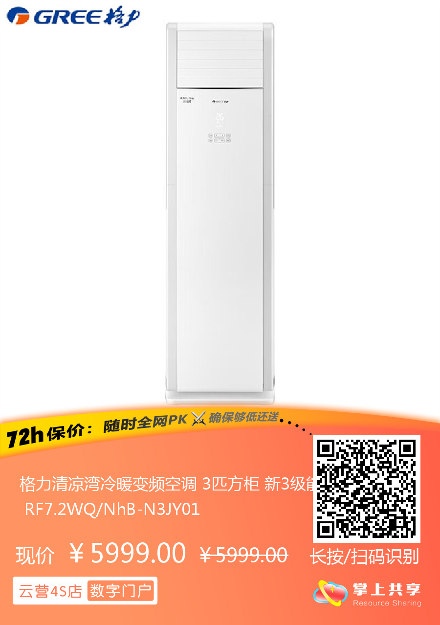 格力清凉湾冷暖变频空调 3匹方柜 新3级能效 RF7.2WQ/NhB-N3JY01