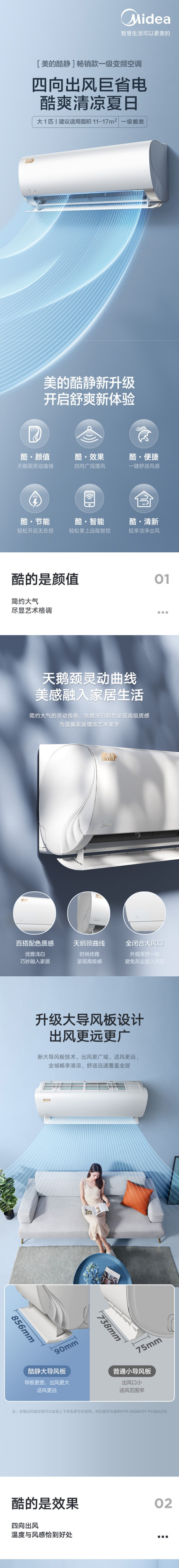 美的空调 大1匹 酷静 新1级能效 变频冷暖 KFR-26GW/N8ZHD1