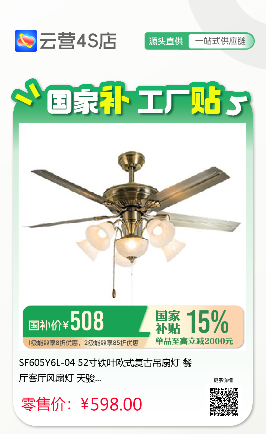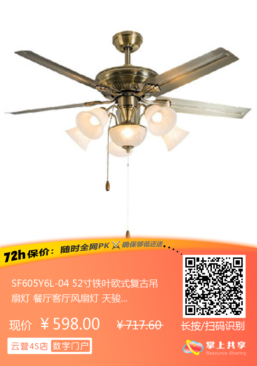 SF605Y6L-04 52寸铁叶欧式复古吊扇灯 餐厅客厅风扇灯 天骏