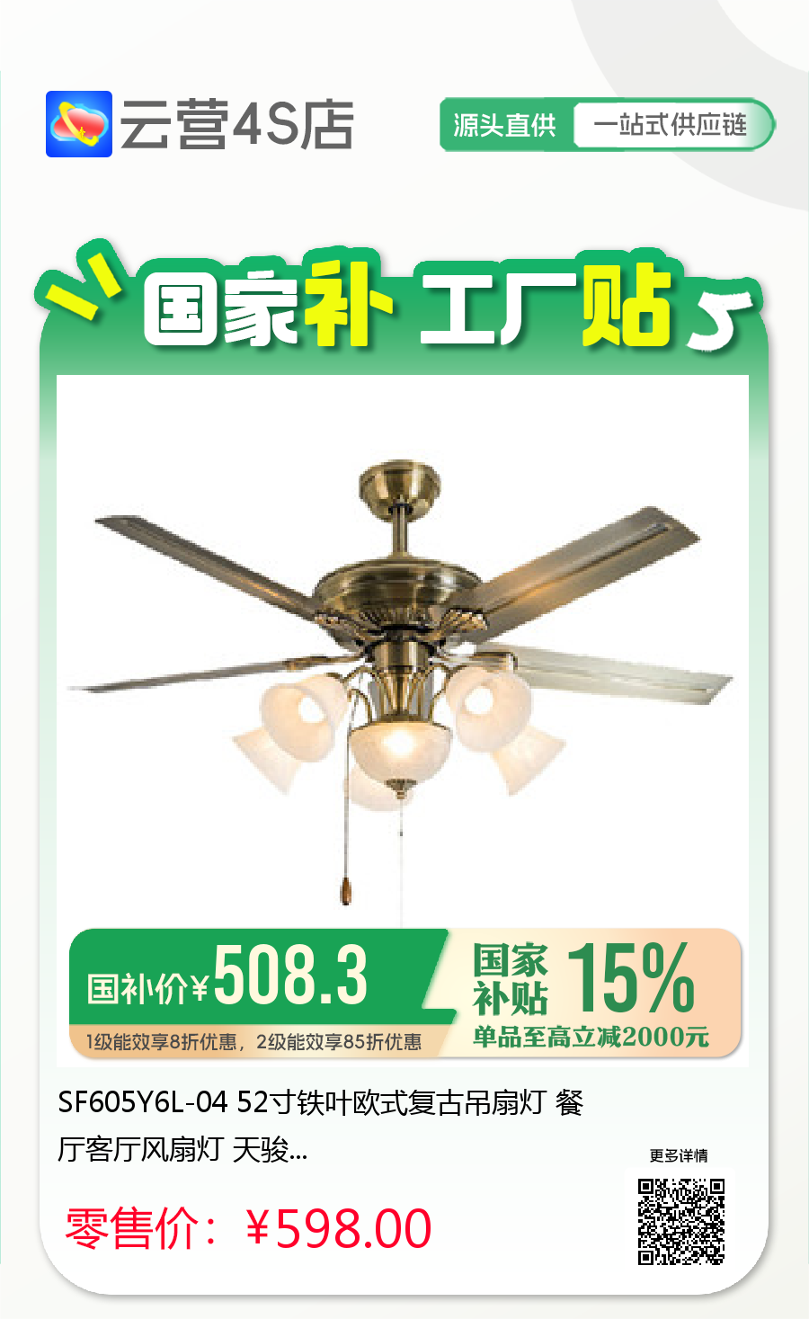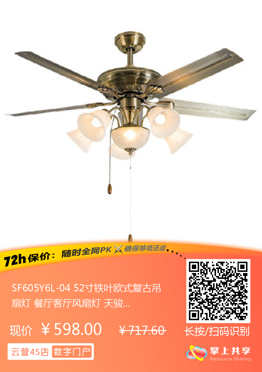 SF605Y6L-04 52寸铁叶欧式复古吊扇灯 餐厅客厅风扇灯 天骏