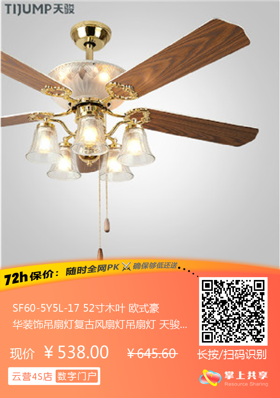 SF60-5Y5L-17 52寸木叶 欧式豪华装饰吊扇灯复古风扇灯吊扇灯 天骏