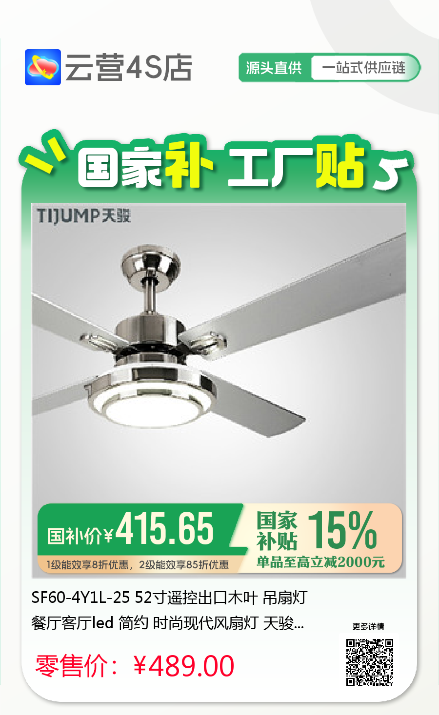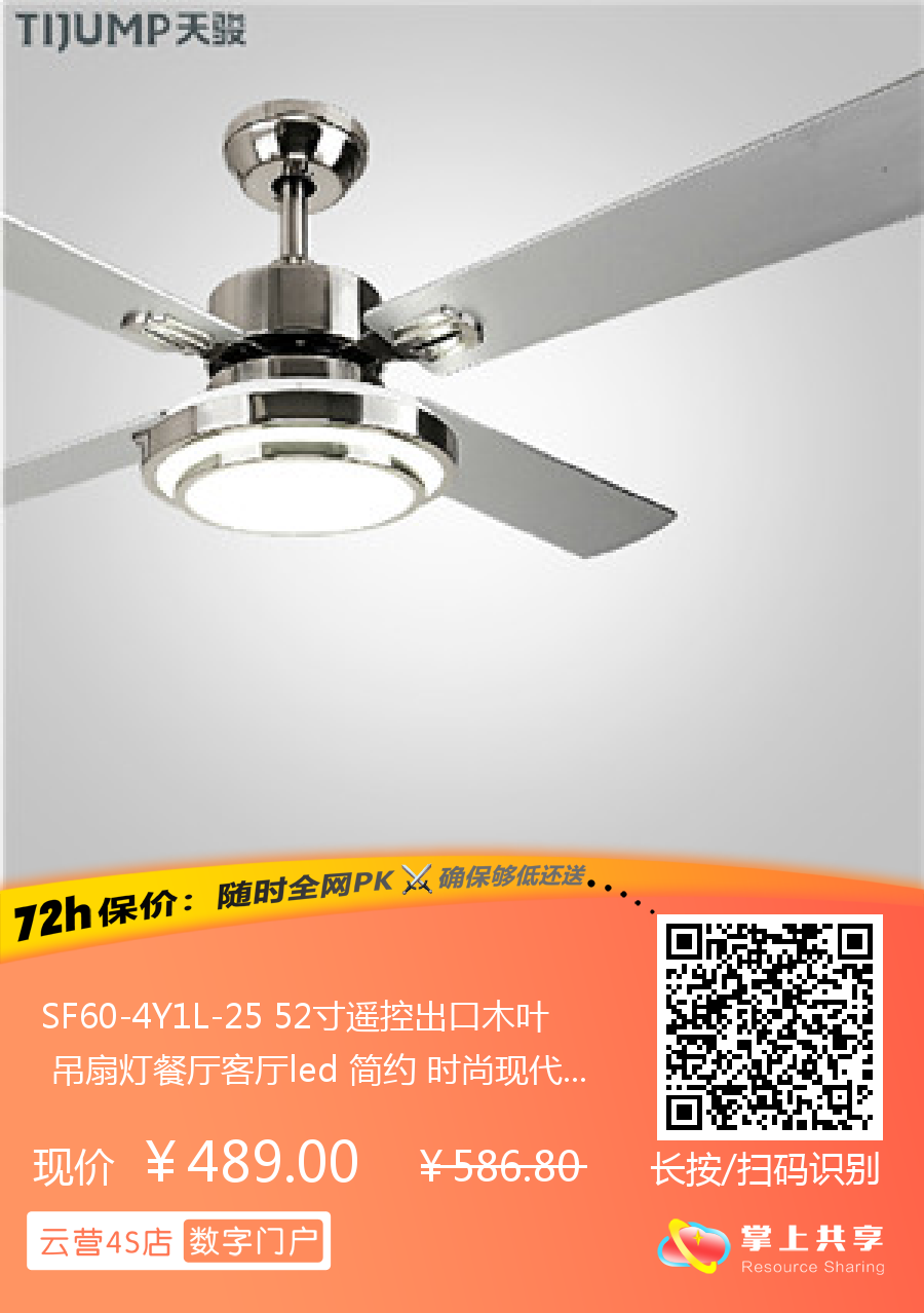 SF60-4Y1L-25 52寸遥控出口木叶 吊扇灯餐厅客厅led 简约 时尚现代风扇灯 天骏