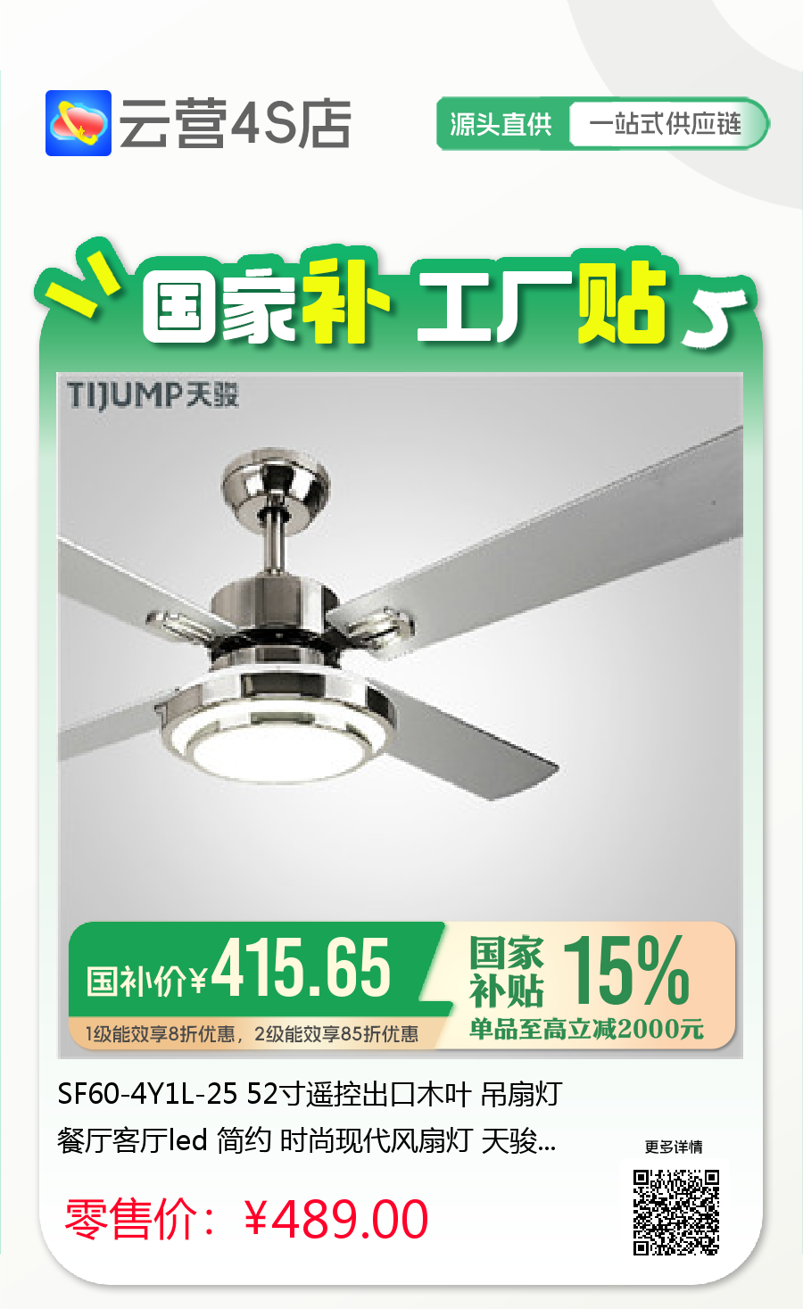 SF60-4Y1L-25 52寸遥控出口木叶 吊扇灯餐厅客厅led 简约 时尚现代风扇灯 天骏