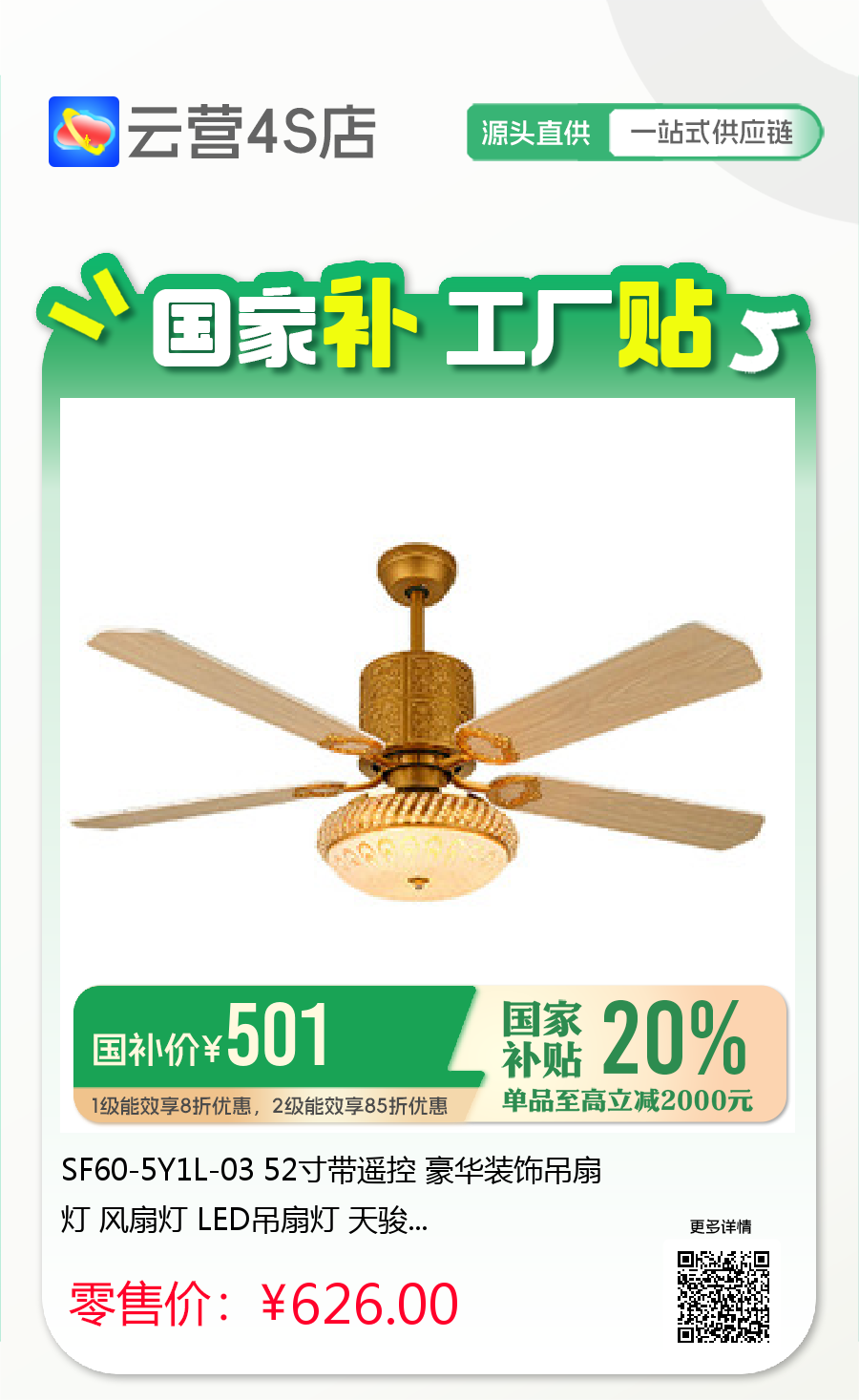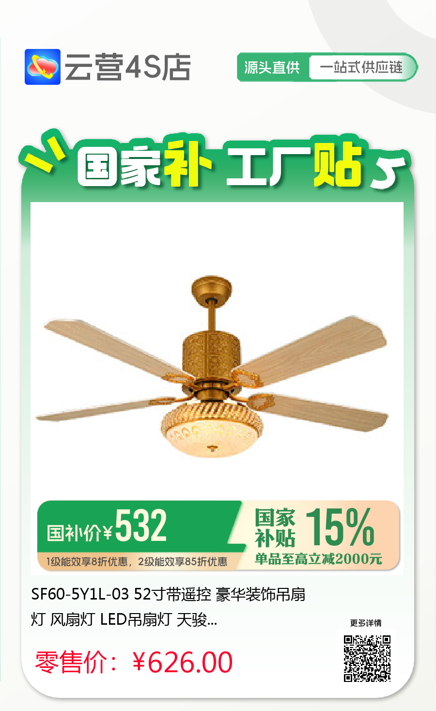 SF60-5Y1L-03 52寸带遥控 豪华装饰吊扇灯 风扇灯 LED吊扇灯 天骏