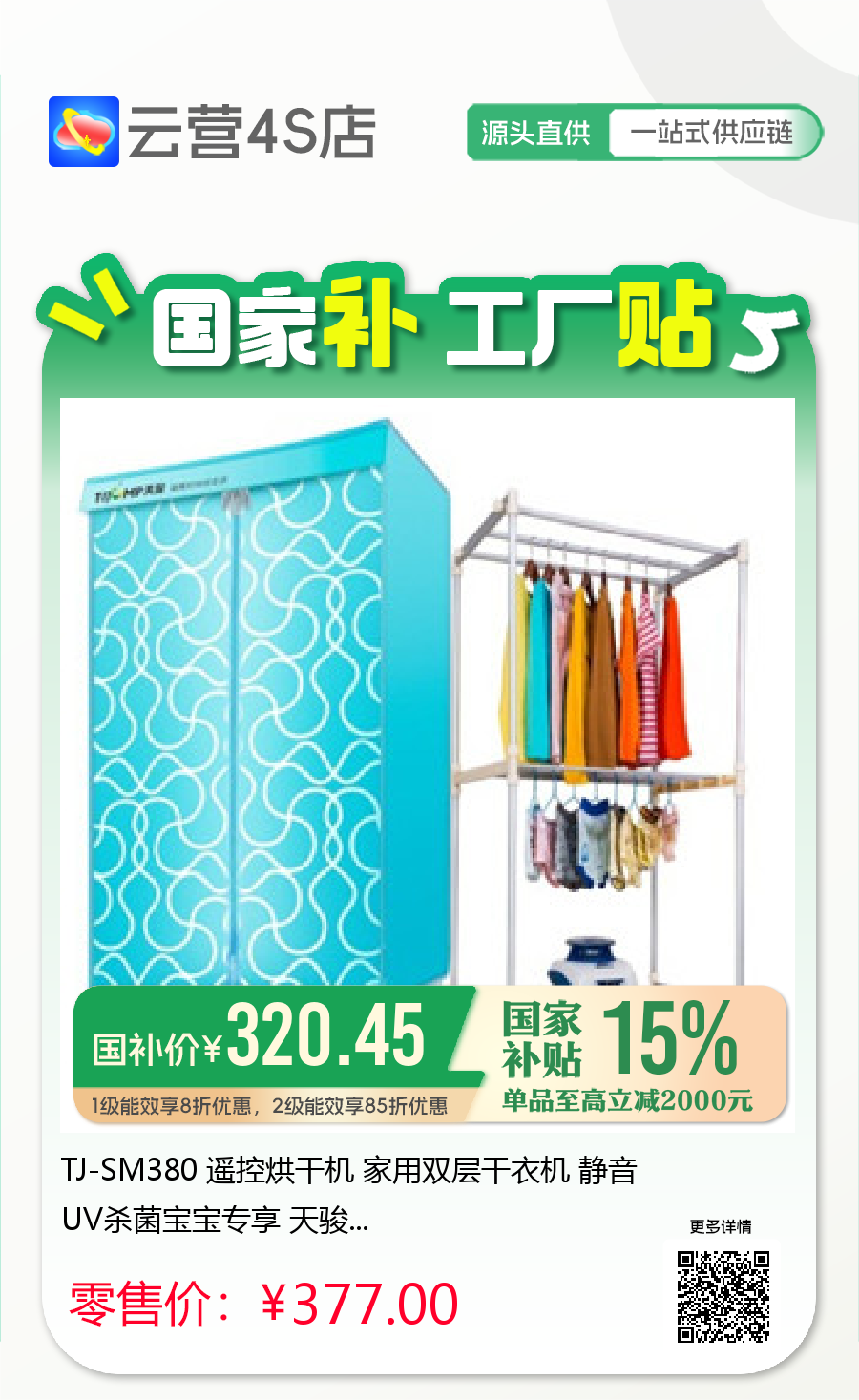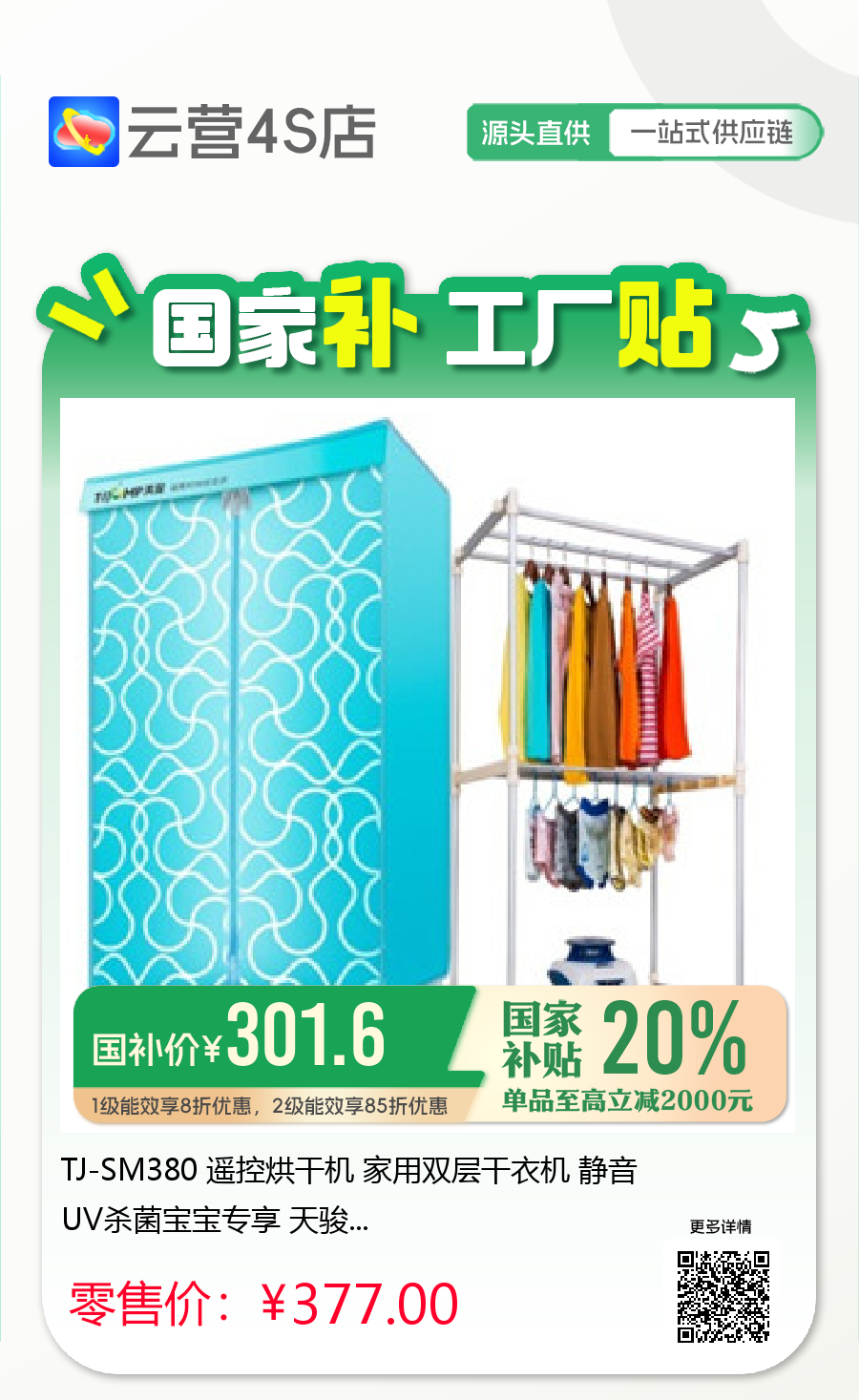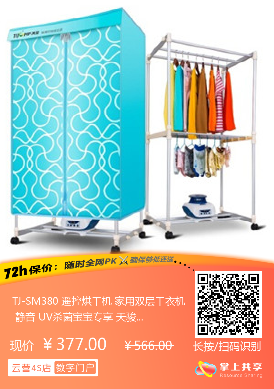 TJ-SM380 遥控烘干机 家用双层干衣机 静音 UV杀菌宝宝专享 天骏