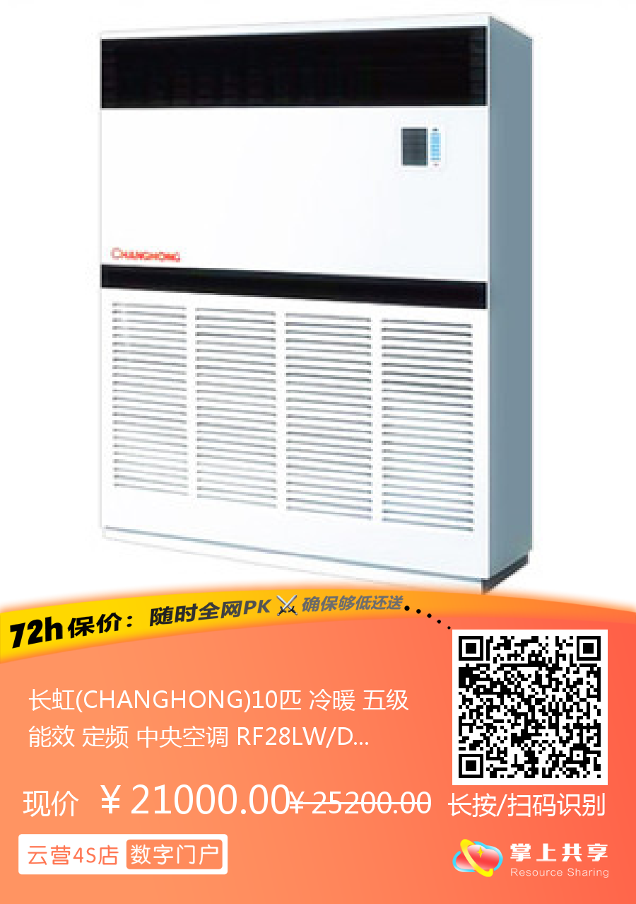 长虹(CHANGHONG)10匹 冷暖 五级能效 定频 中央空调 RF28LW/DS1 神风立式工程柜机(免费安装+磨墙钻孔)