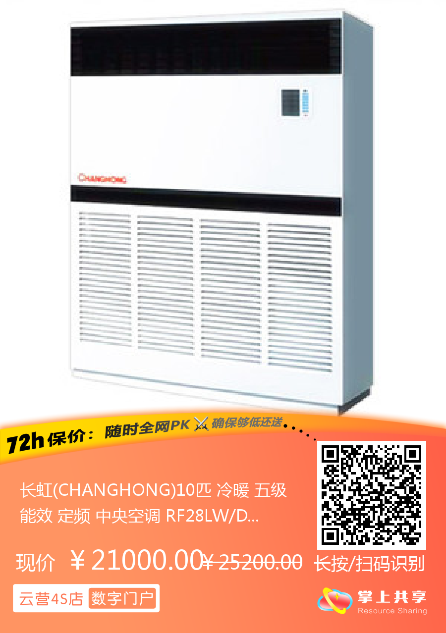 长虹(CHANGHONG)10匹 冷暖 五级能效 定频 中央空调 RF28LW/DS1 神风立式工程柜机(免费安装+磨墙钻孔)