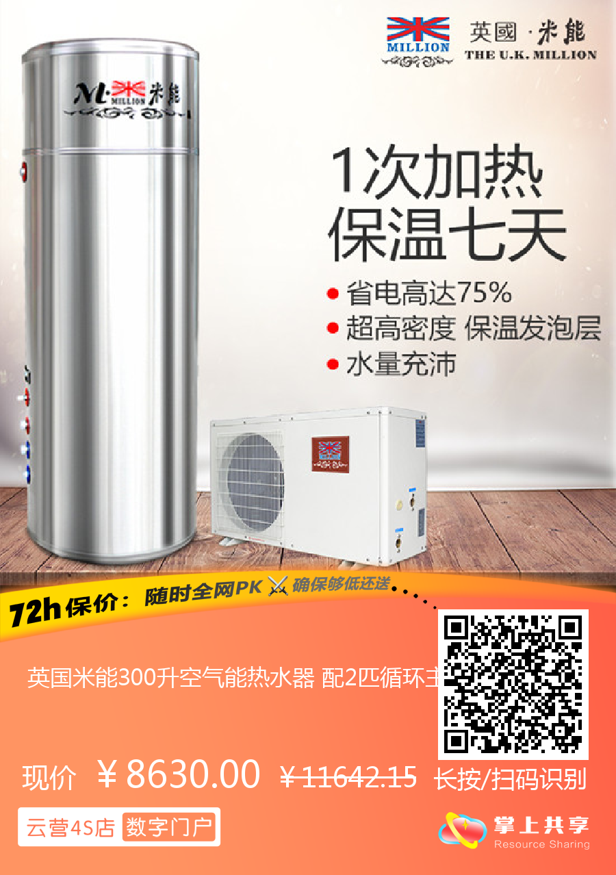 英国米能300升空气能热水器 配2匹循环主机